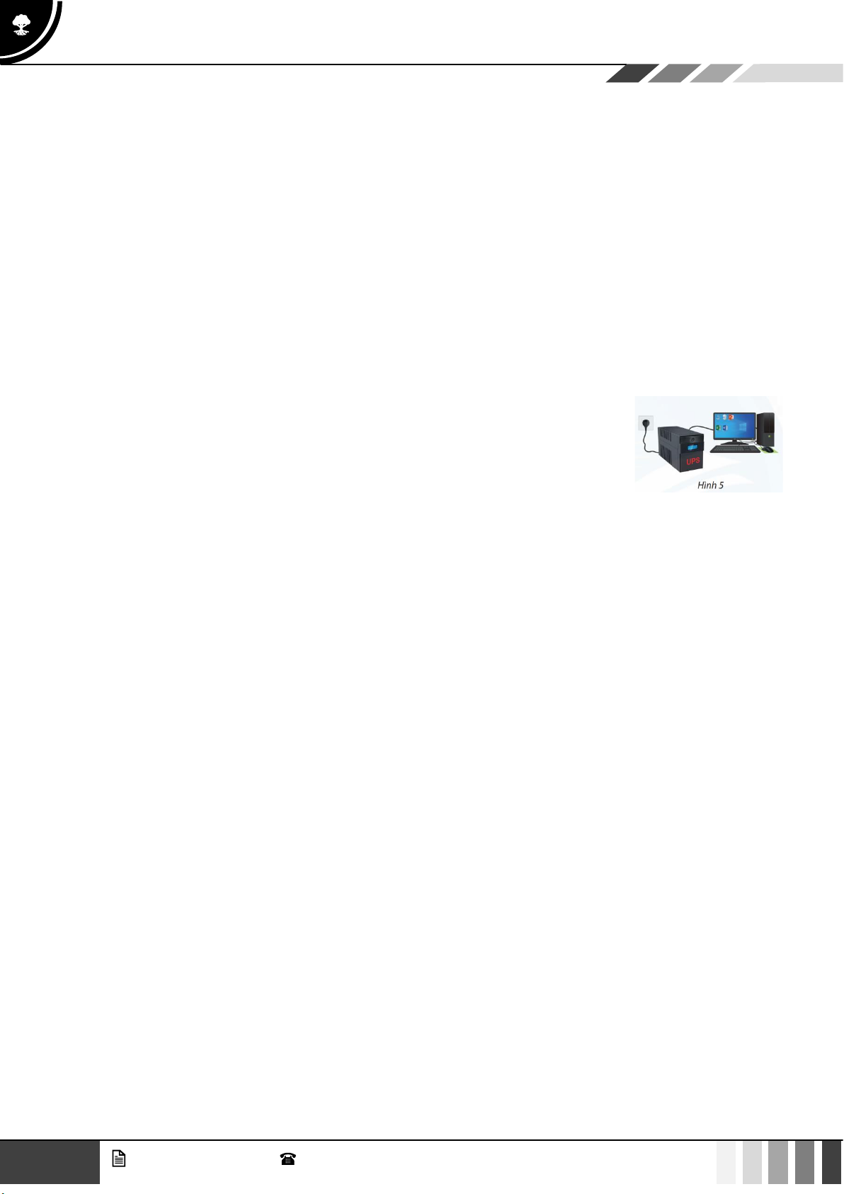Bài tập 8: Máy tính và thiết bị lưu điện (UPS) được kết nối như Hình 5. Khi xảy ra