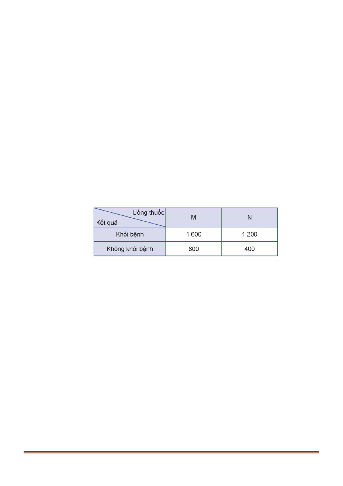 thuốc M, 1 600 bệnh nhân còn lại dùng thuốc N. Kết quả được cho trong bảng dữ liệu thống kê 2 x 2 như sau: Page 10
