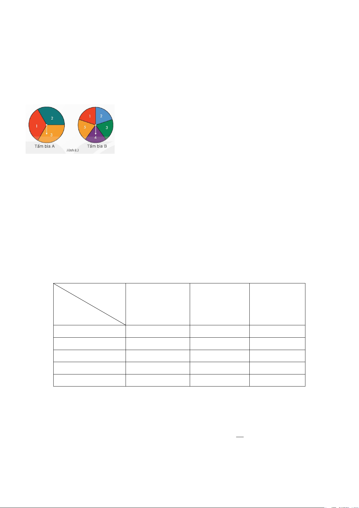 tấm bìa cứng B hình tròn được chia thành 5 hình quạt có diện tích bằng nhau, đánh số 1;2;3;4;5(H.8.3) .
