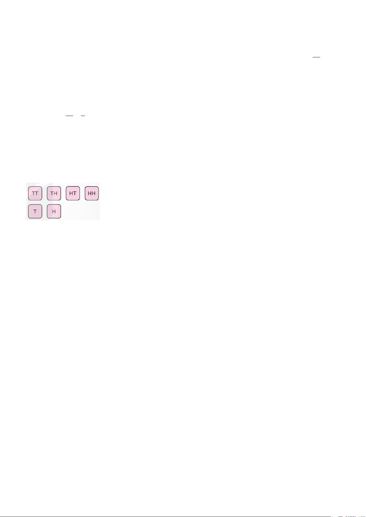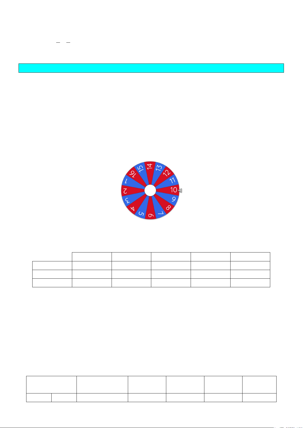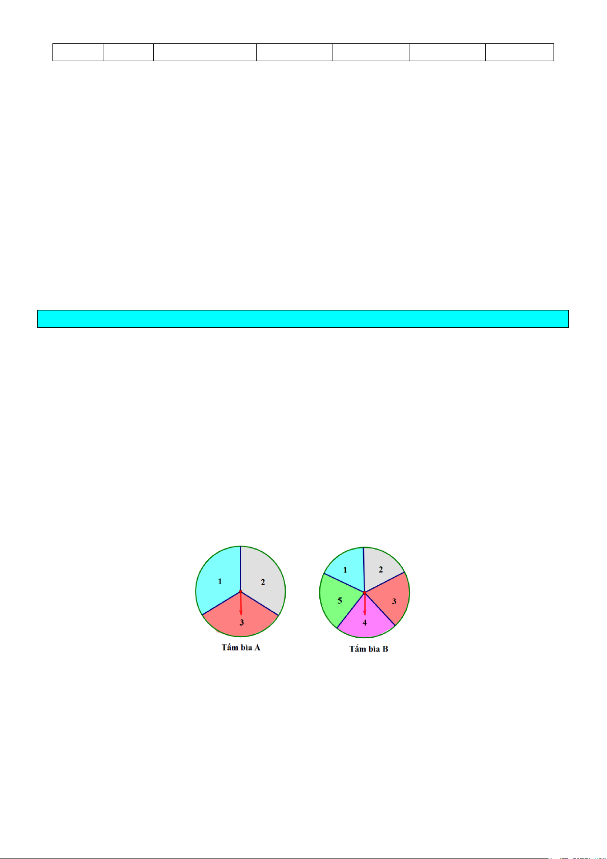 Do đó, có 9 kết quả thuận lợi cho biến cố G là (1,2);(2,1);(2,2);(2,3);(3,2);(4,1) ; (4,2);(4,3);(5,2) Vậy P(G) 9 3 = = . 15 5 B. BÀI TẬP