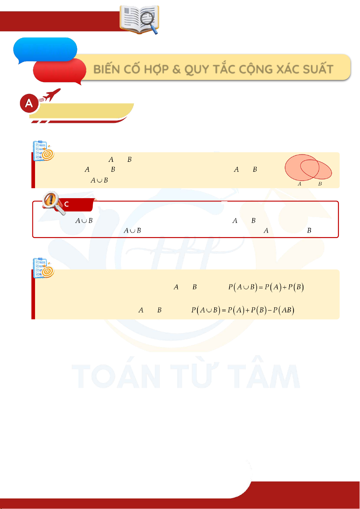 BIẾN CỐ HỢP & QUY TẮC CỘNG XÁC SUẤT Lý thuyết 1. Biến cố hợp Định nghĩa: Cho hai biến cố và . Biến cố "