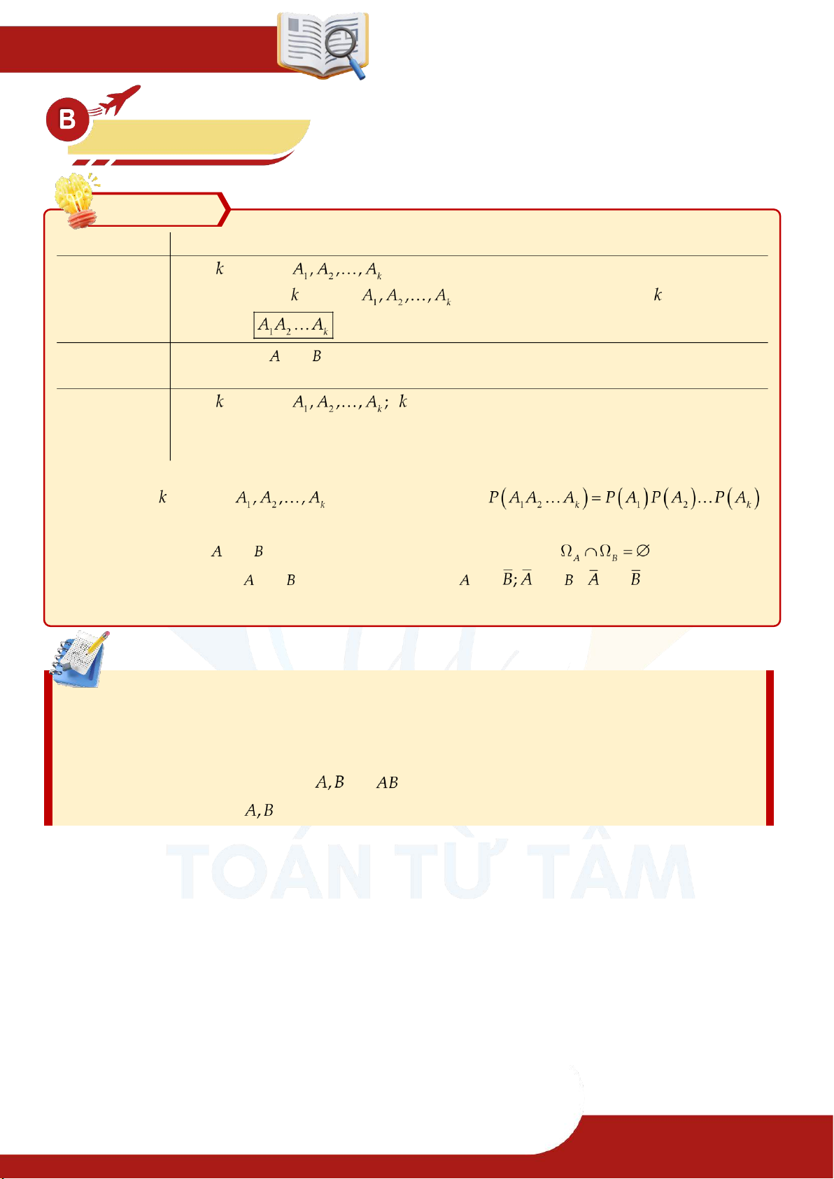 4. Quy tắc nhân xác suất Định nghĩa: Nếu hai biến cố và độc lập thì Chú ý