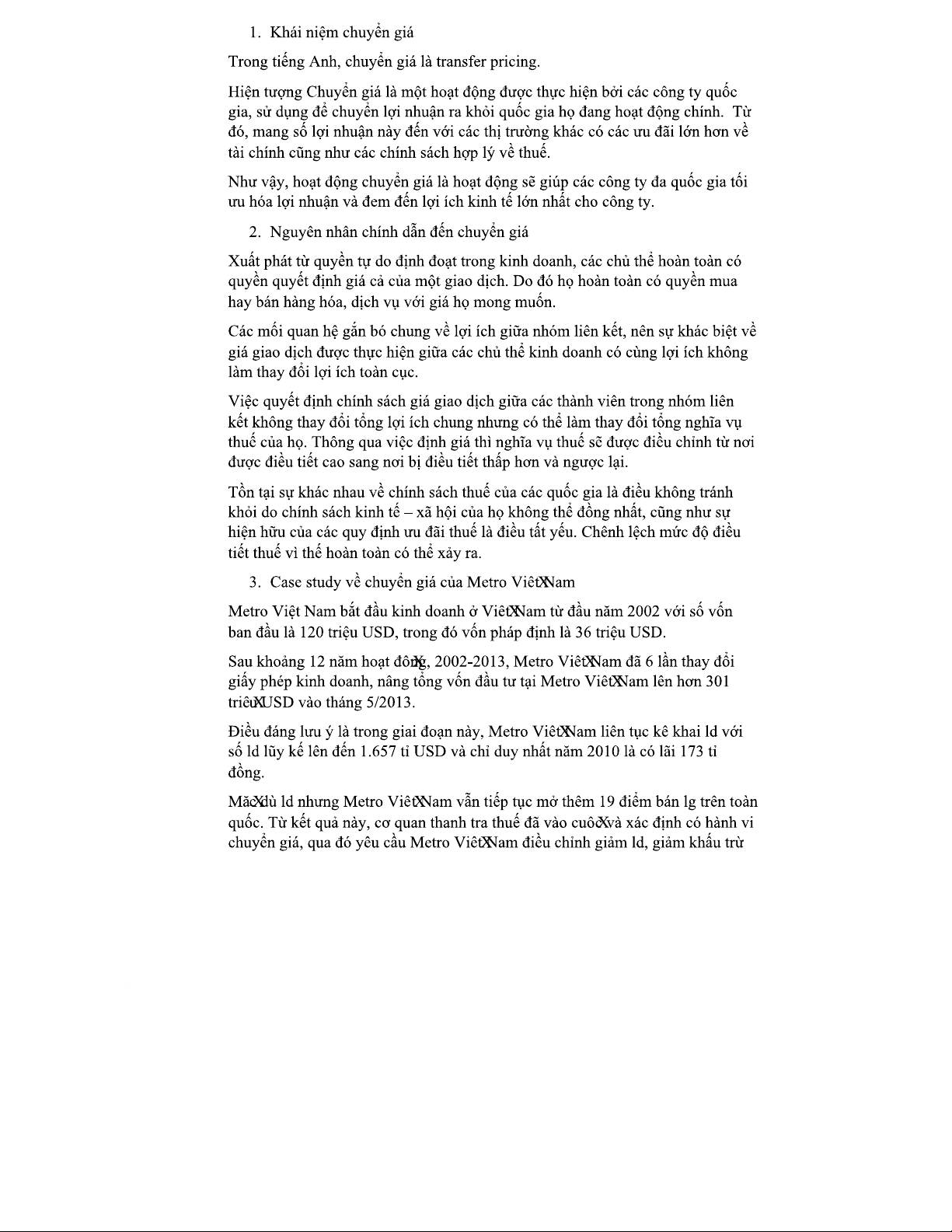 Chuyển giá tại Việt Nam: Khái niệm và Nghiên cứu trường hợp Metro