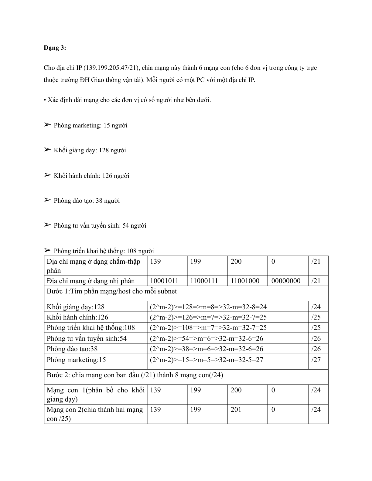 • Xác định dải mạng cho các đơn vị có số người như bên dưới.