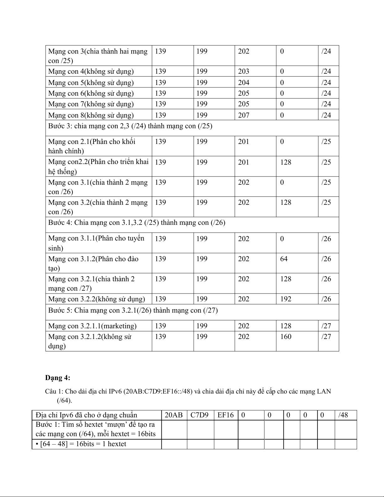 Mạng con 3.2.1.2(không sử 139 199 202 160 /27 dụng) Dạng 4: