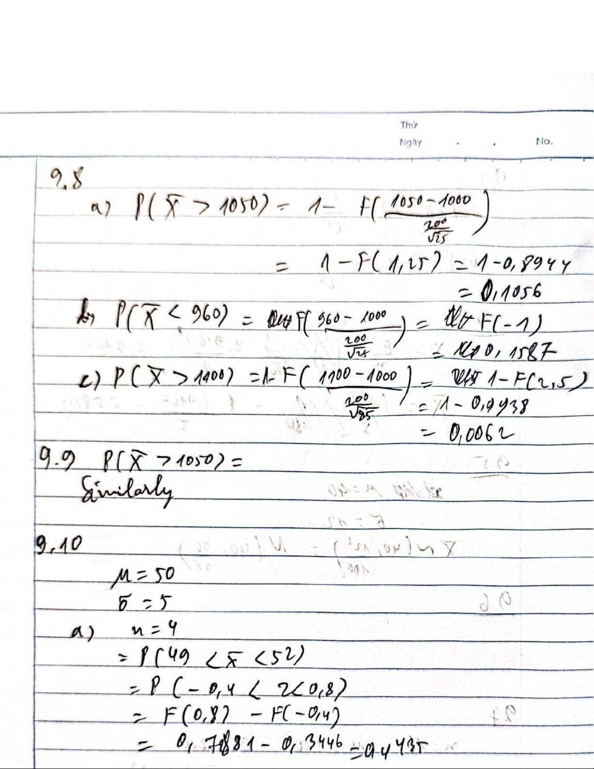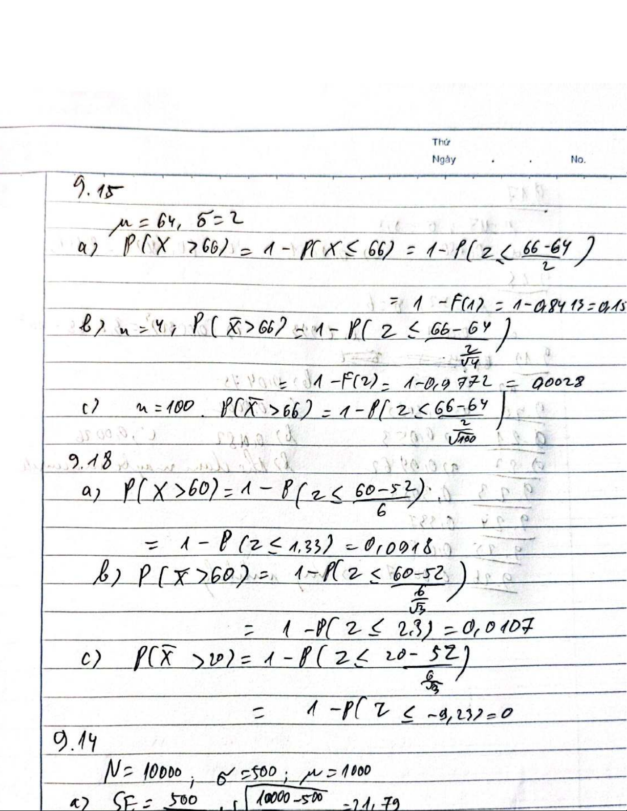 Ciutto exercises 9.1-9.26 solutions and calculations môn Xác suất thống kê| Trường Đại học Ngoại Thương