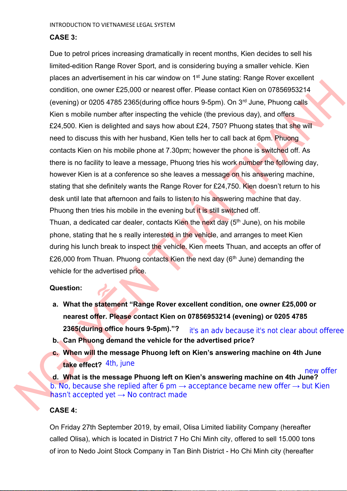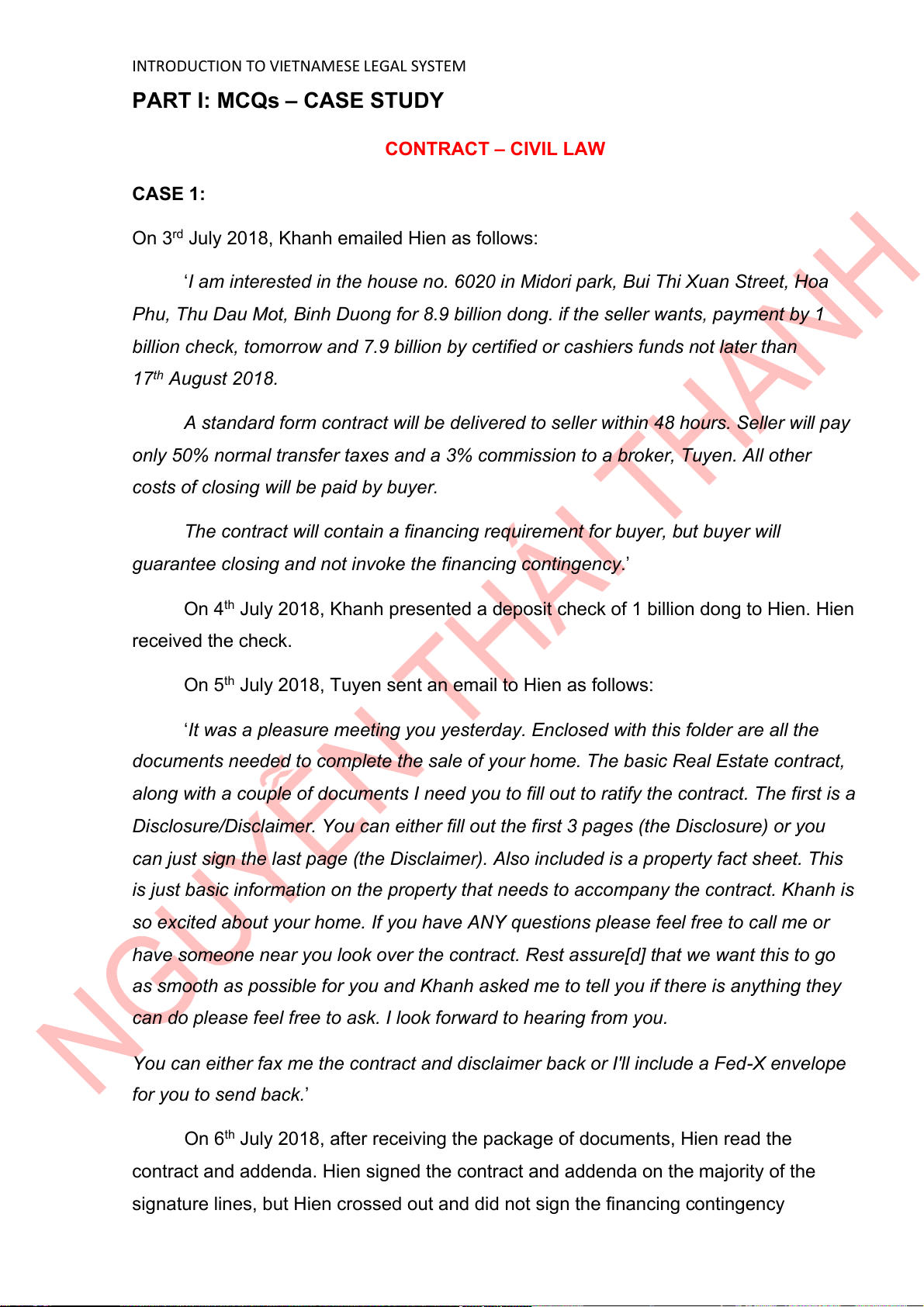 INTRODUCTION TO VIETNAMESE LEGAL SYSTEM CASE 3: