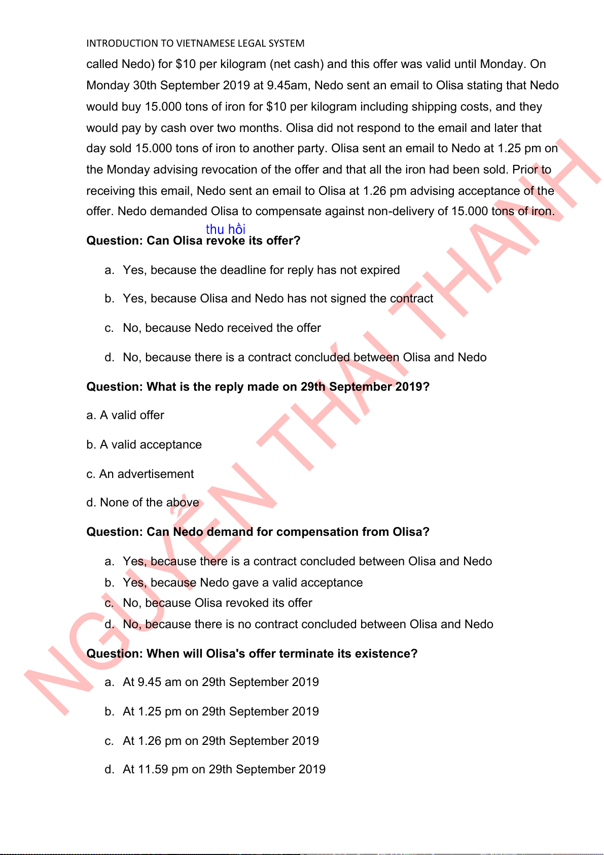 offer. Nedo demanded Olisa to compensate against non-delivery of 15.000 tons of iron. thu hồi