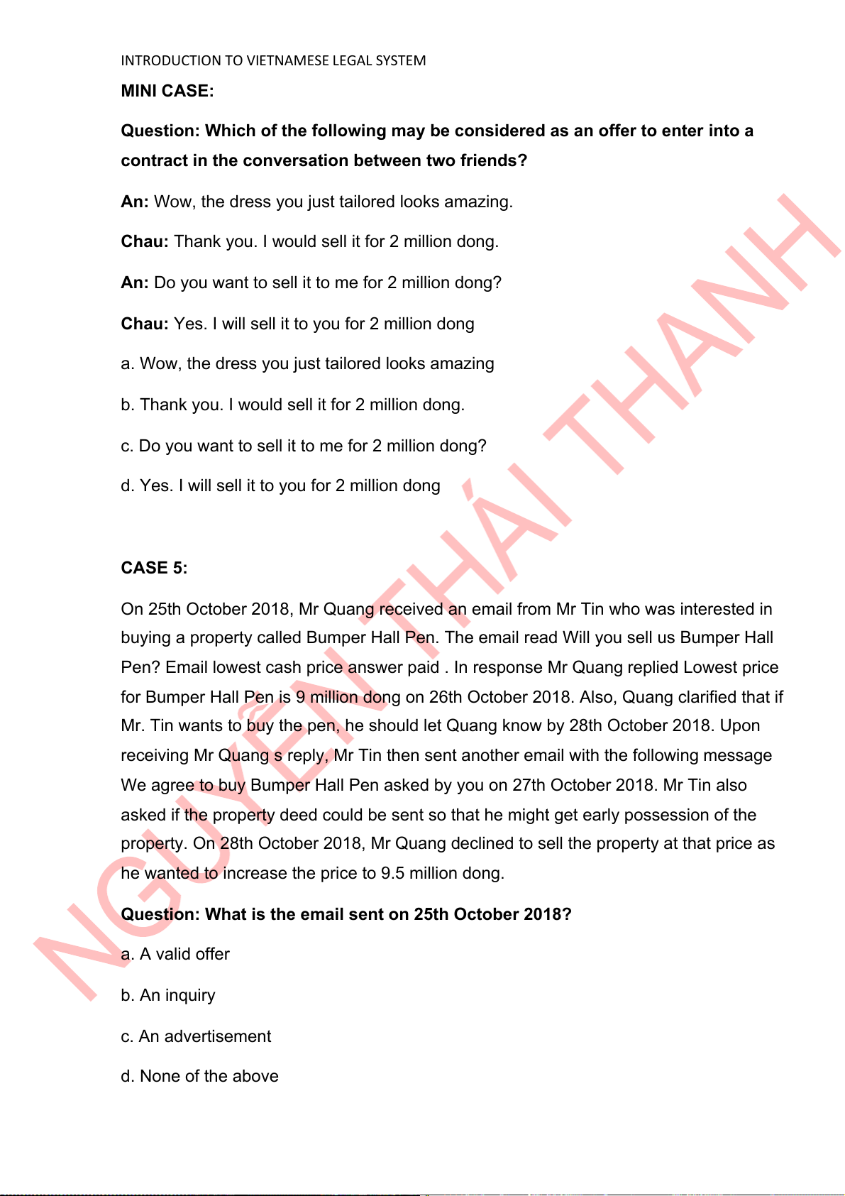 d. Yes. I will sell it to you for 2 million dong CASE 5: