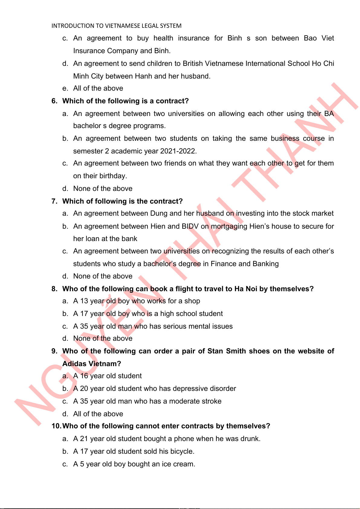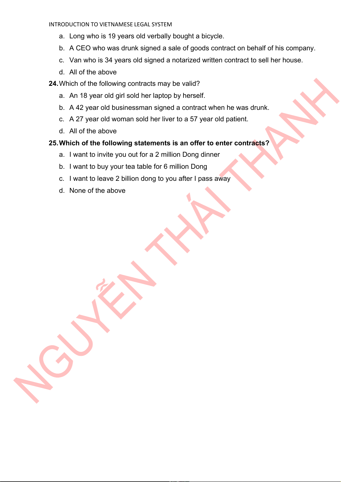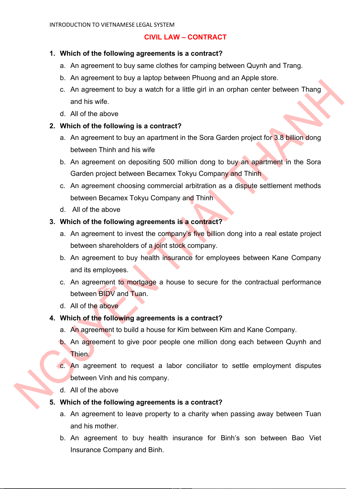 INTRODUCTION TO VIETNAMESE LEGAL SYSTEM a. A sale of wheat contract b. A deposit contract