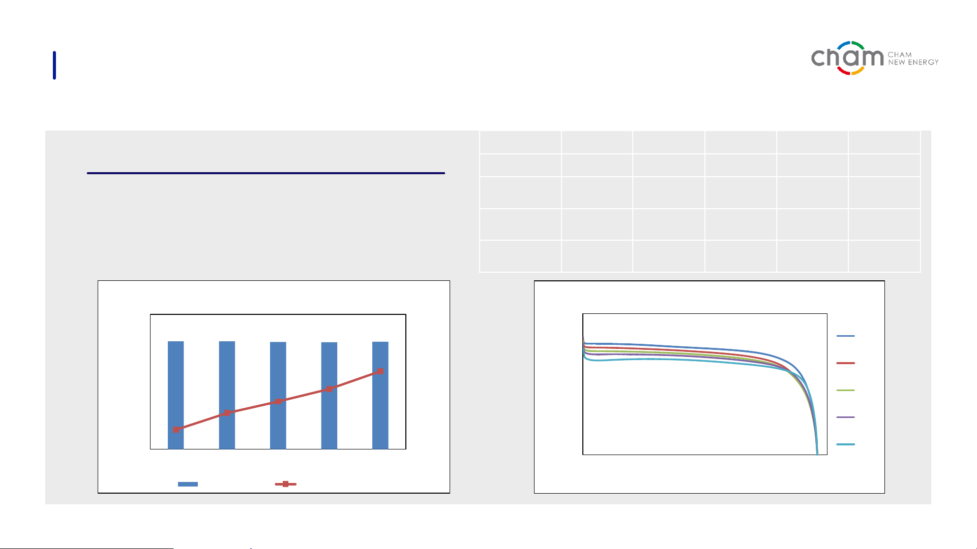 Discharge: 1C CC to 2.0V,rest for 30min 25℃ 0.5C/1C 2.0-3.65V 25℃ 0.8C/1C 2.0-3.65V 105.00% 105.00% 100.00% 100.00% n/% n/% io io 95.00% 95.00% ent ent t t re re 90.00% y y 90.00% cit cit pa pa 85.00% 85.00% Ca Ca 80.00% 80.00% 0 1000 2000 3000 4000 0 500 1000 1500 2000 2500 Number of cycles Number of cycles Cell Cyclic number Retention ratio/% Cell Cyclic number Retention ratio/% 1# 4011 81.82 3# 1946 79.97 2# 4019 81.59 4# 2088 79.91