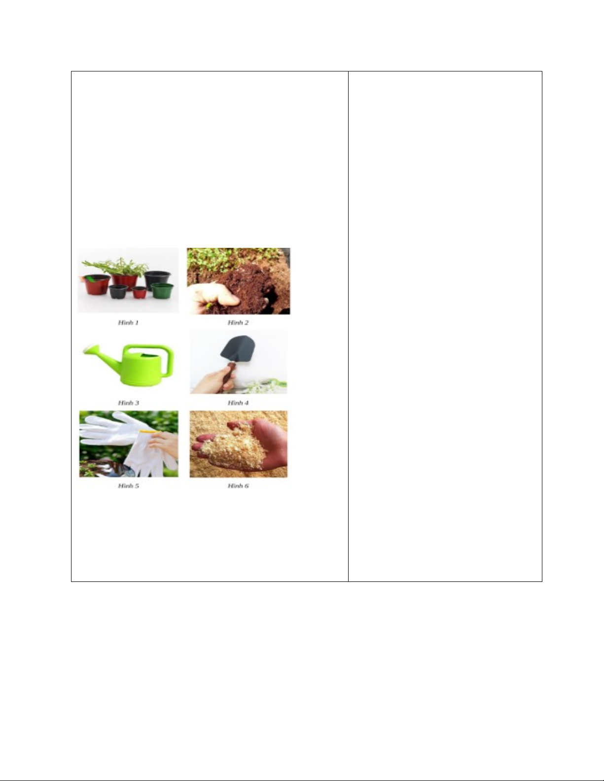 - Các tranh giáo khoa liên quan đến nội dung Vật liệu và dụng cụ trồng hoa cây cảnh trong chậu có trong danh mục thiết bị tối thiểu.
