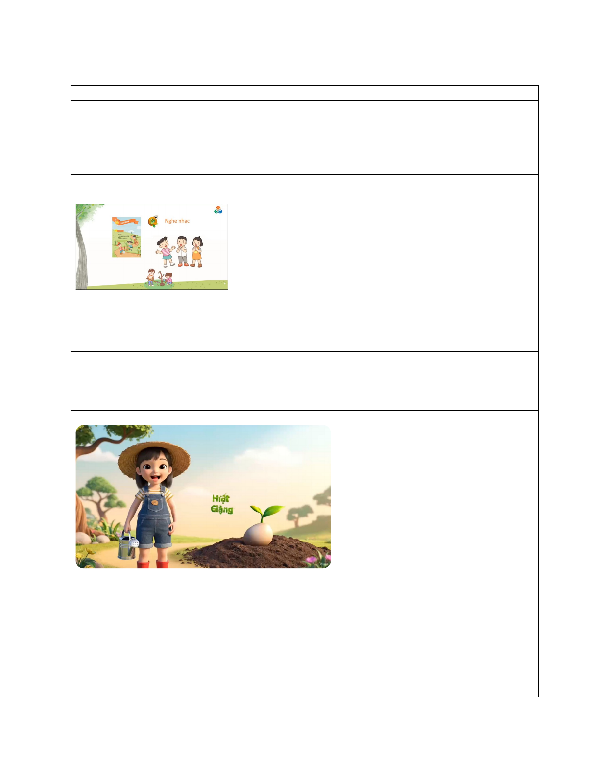 - GV tổ chức hát bài Trồng Cây, nhạc Hoàng Long, thơ Bế Kiến Quốc.