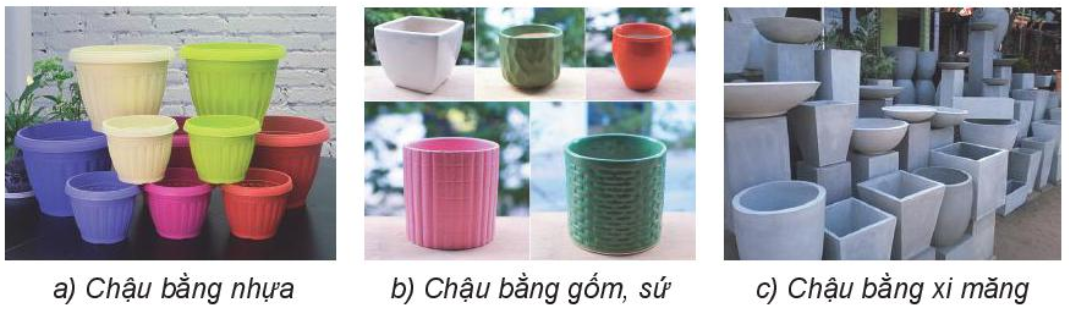 - Năng lực nhận biết công nghệ: Trình bày được đặc điểm của một số loại chậu trồng hoa, cây cảnh.