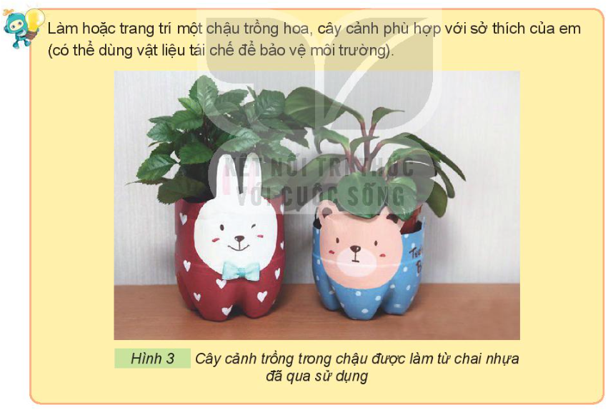 - Năng lực thiết kế công nghệ: Nêu được ý tưởng và làm được một số chậu trồng hoa, trồng cây từ các vật liệu tái chế thông dụng phù hợp với sở thích của em.