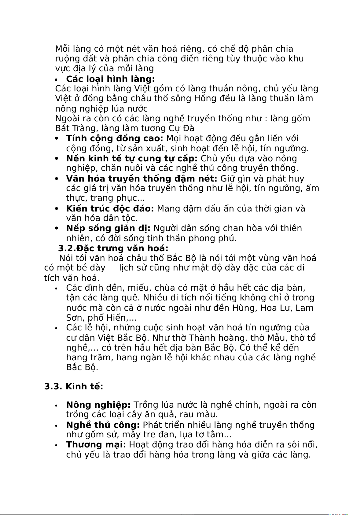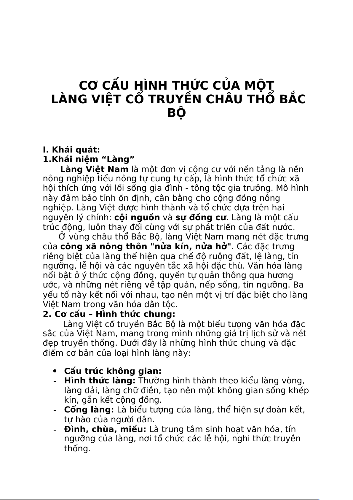 LÀNG VIỆT CỔ TRUYỀN CHÂU THỔ BẮC BỘ I. Khái quát: