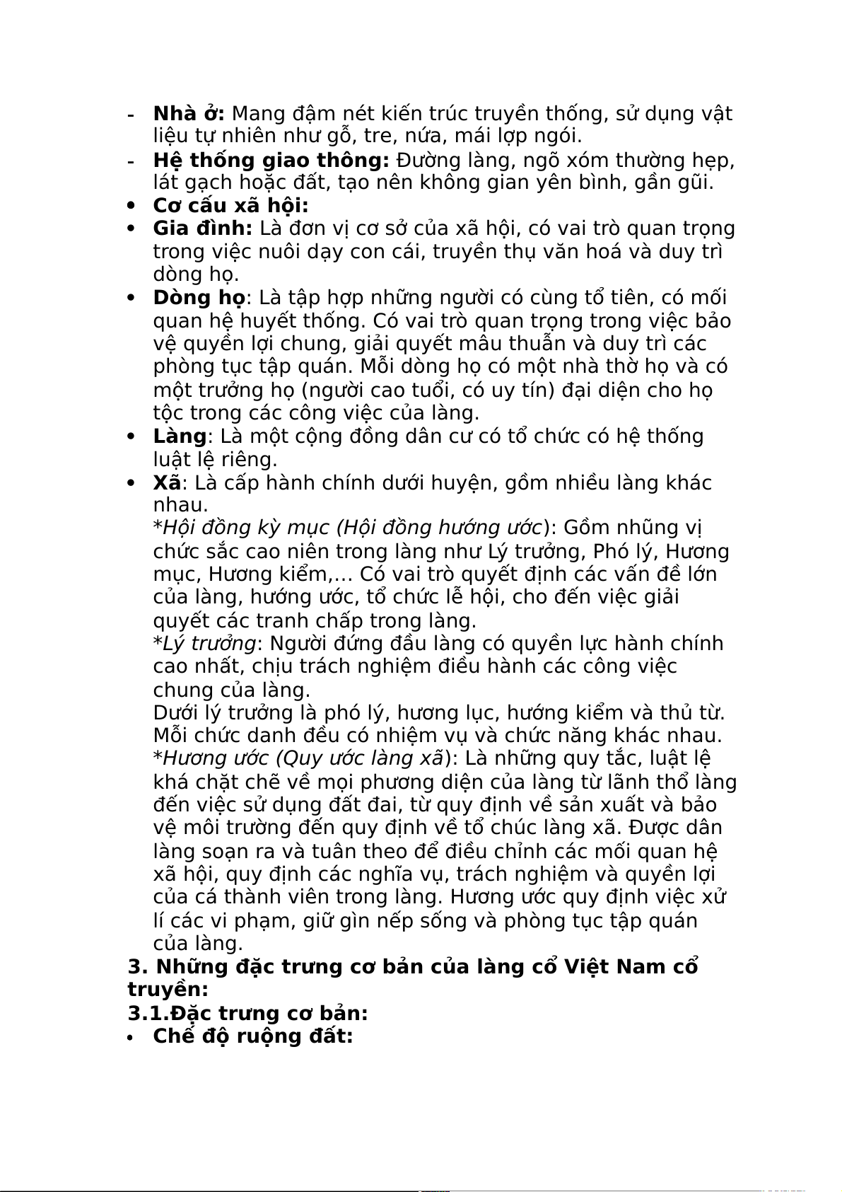 3. Những đặc trưng cơ bản của làng cổ Việt Nam cổ truyền: