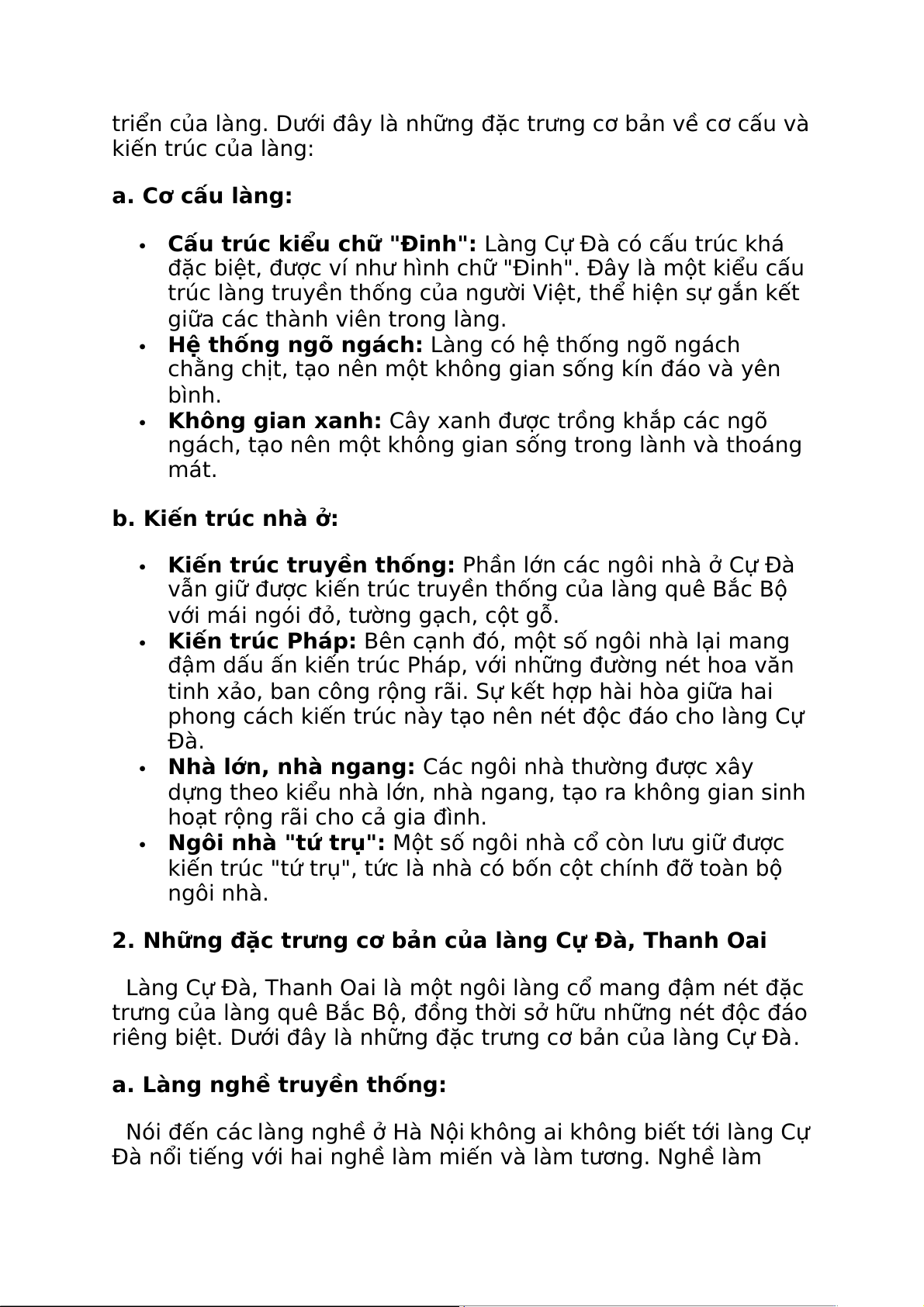 riêng biệt. Dưới đây là những đặc trưng cơ bản của làng Cự Đà.