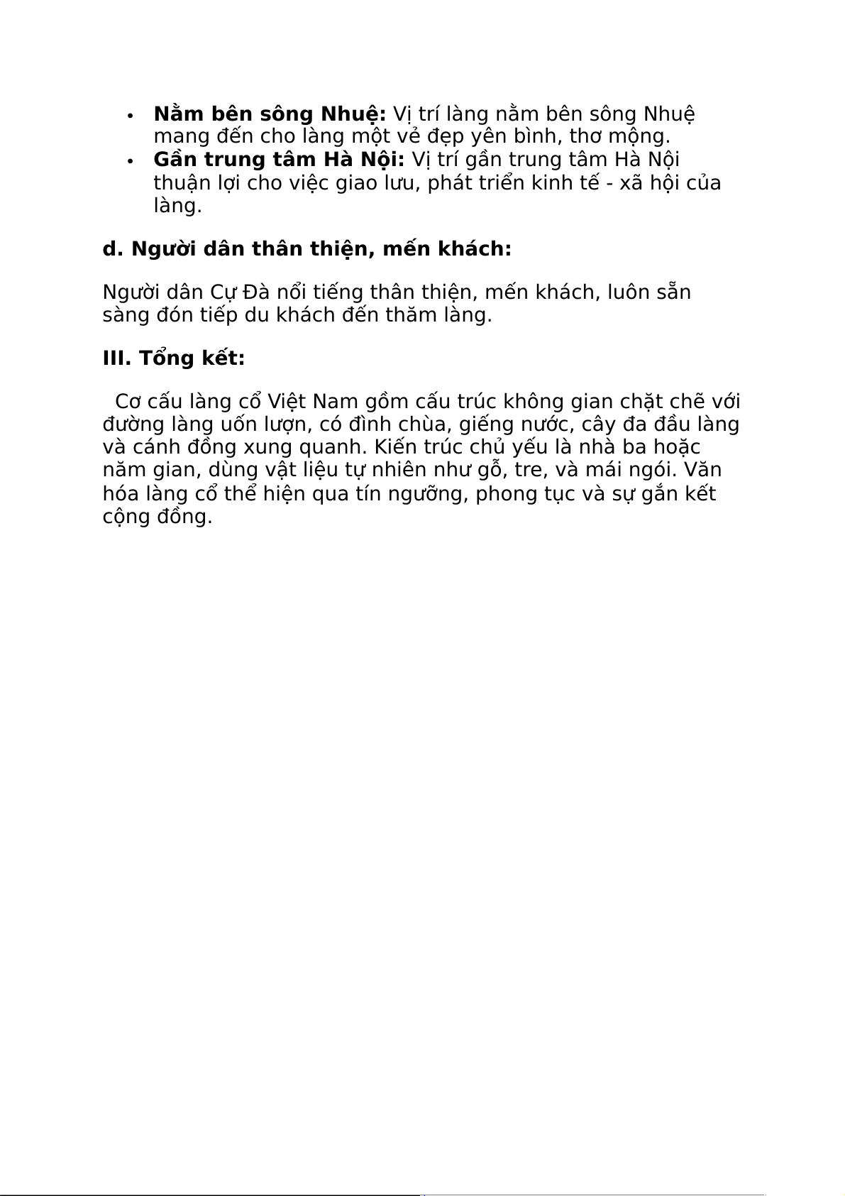 sàng đón tiếp du khách đến thăm làng. III. Tổng kết: