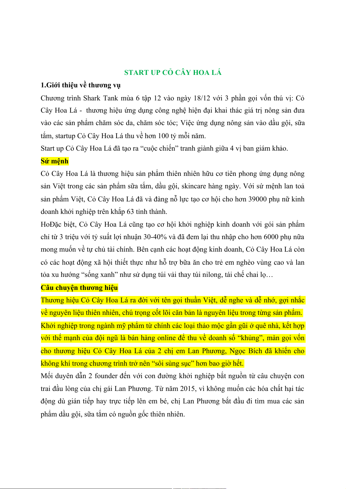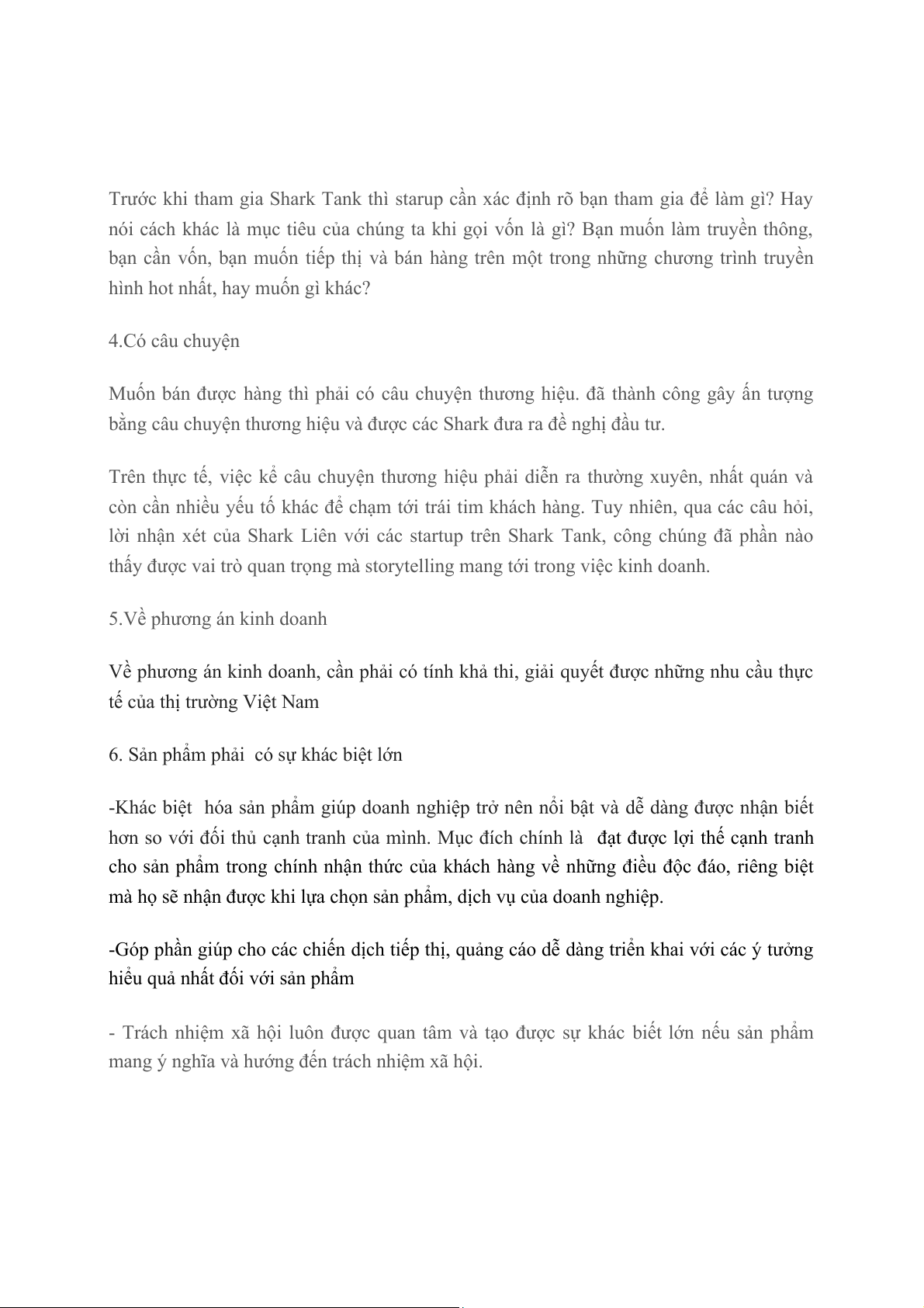 thấy được vai trò quan trọng mà storytelling mang tới trong việc kinh doanh. 5.Về phương án kinh doanh