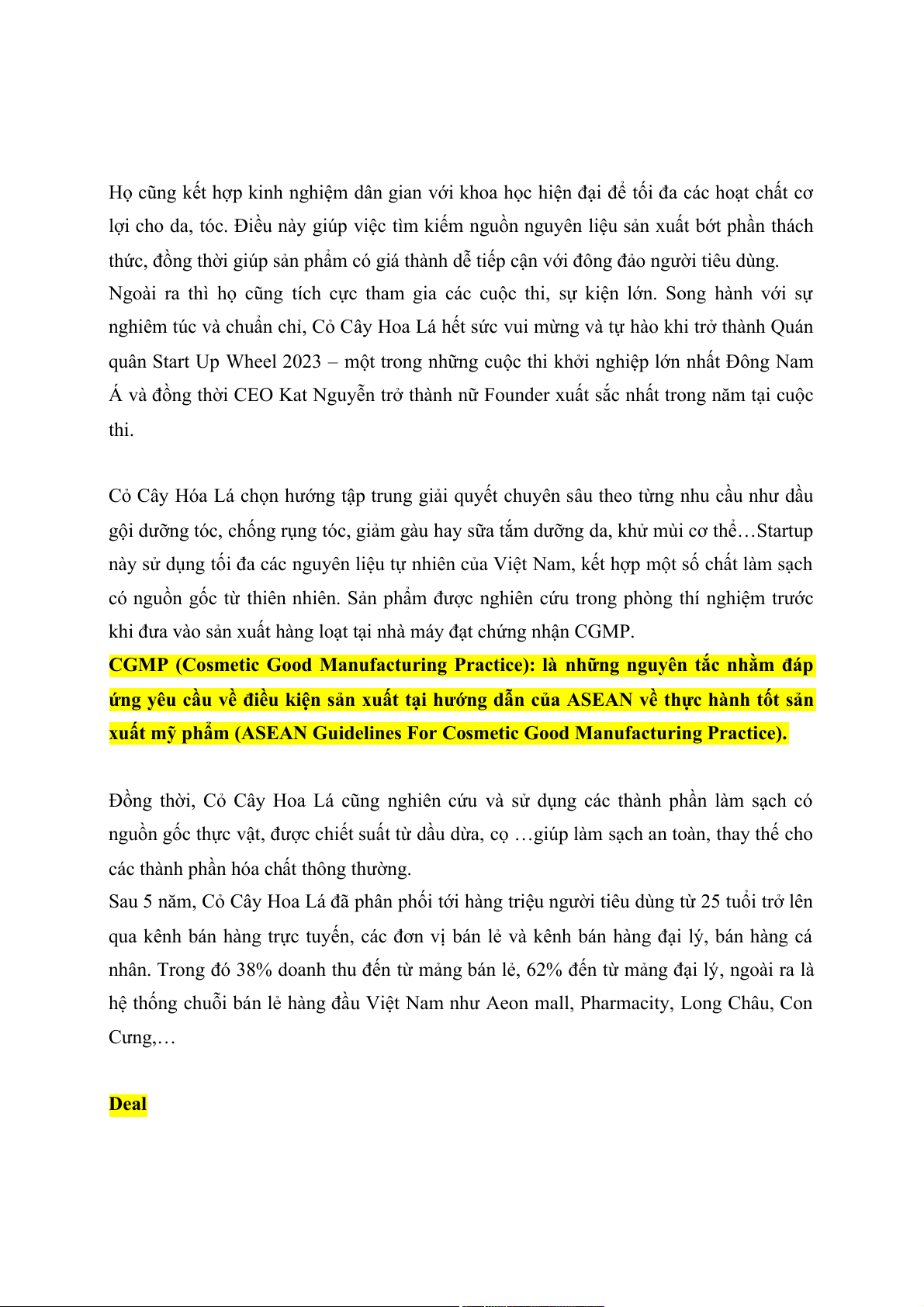 gội dưỡng tóc, chống rụng tóc, giảm gàu hay sữa tắm dưỡng da, khử mùi cơ thể…Startup