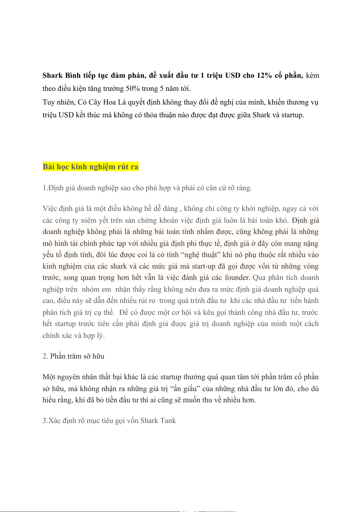 nghiệp trên nhóm em nhận thấy rằng không nên đưa ra mức định giá doanh nghiệp quá