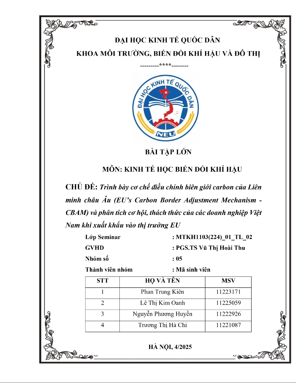 MINH CHÂU ÂU (CBAM) ............................................................................................ 12