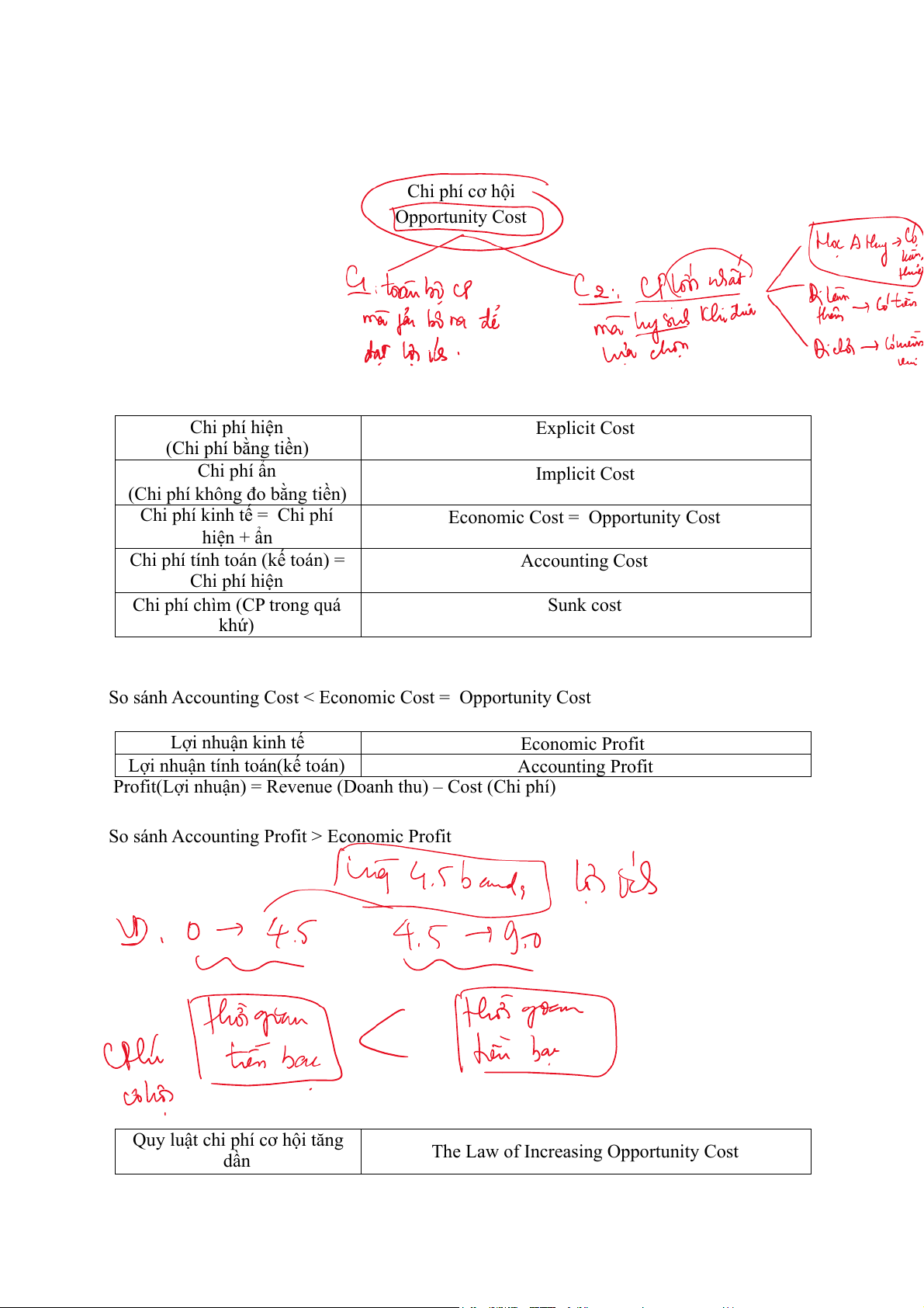 Cơ chế mệnh lệnh, chỉ huy Command mechanism Cơ chế thị trường Market mechanism Cơ chế hỗn hợp Mixed mechanism Chi phí cơ hội Opportunity Cost Chi phí hiện Explicit Cost (Chi phí bằng tiền) Chi phí ẩn Implicit Cost