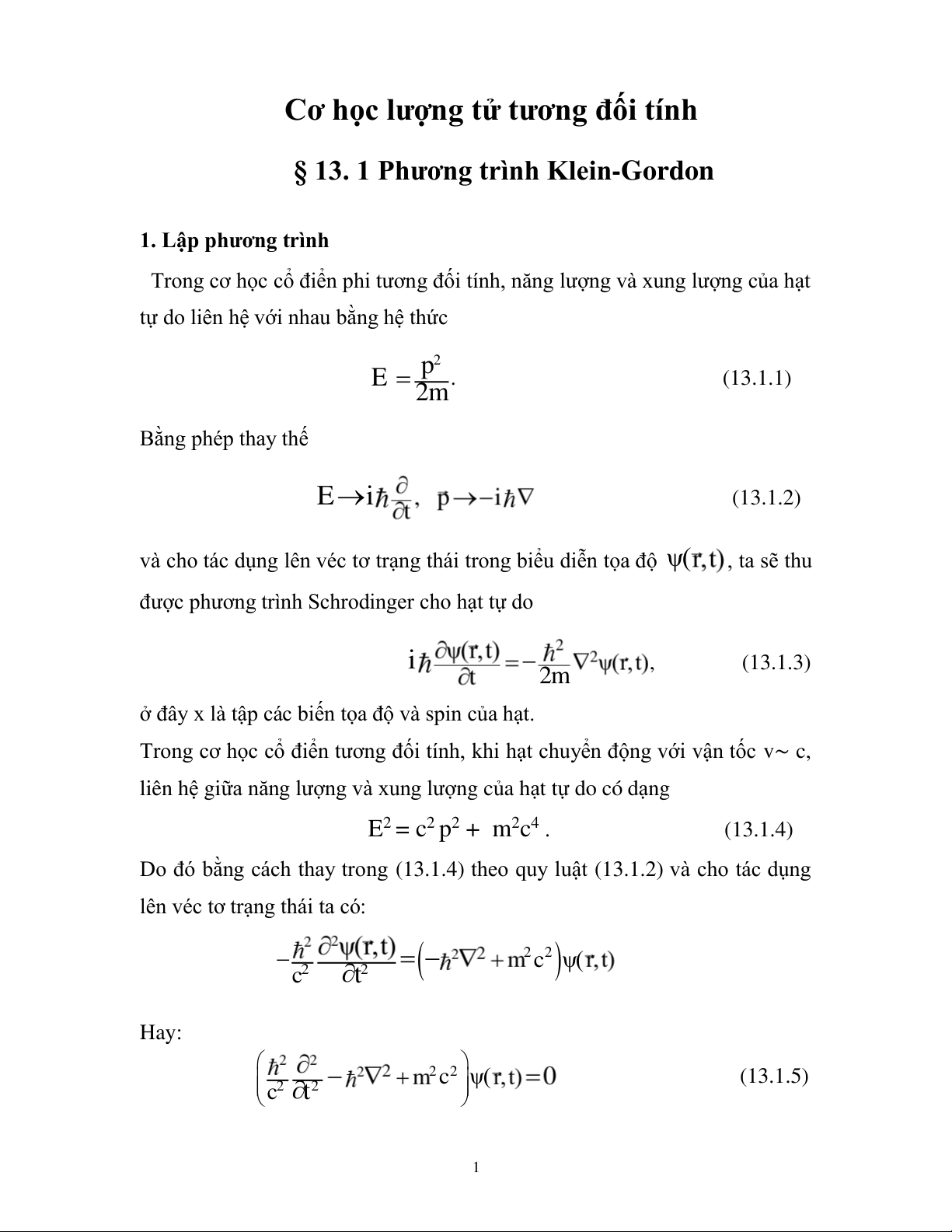 Phương trình (13.1.5) thường được gọi là phương trình Klein-Gordon (do