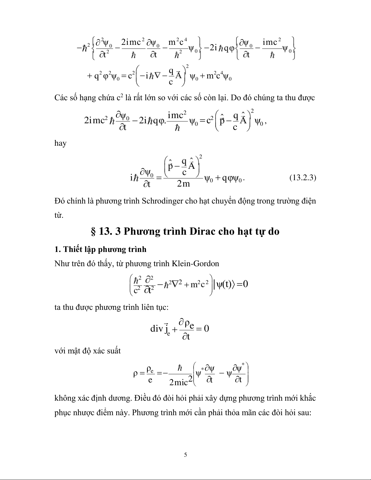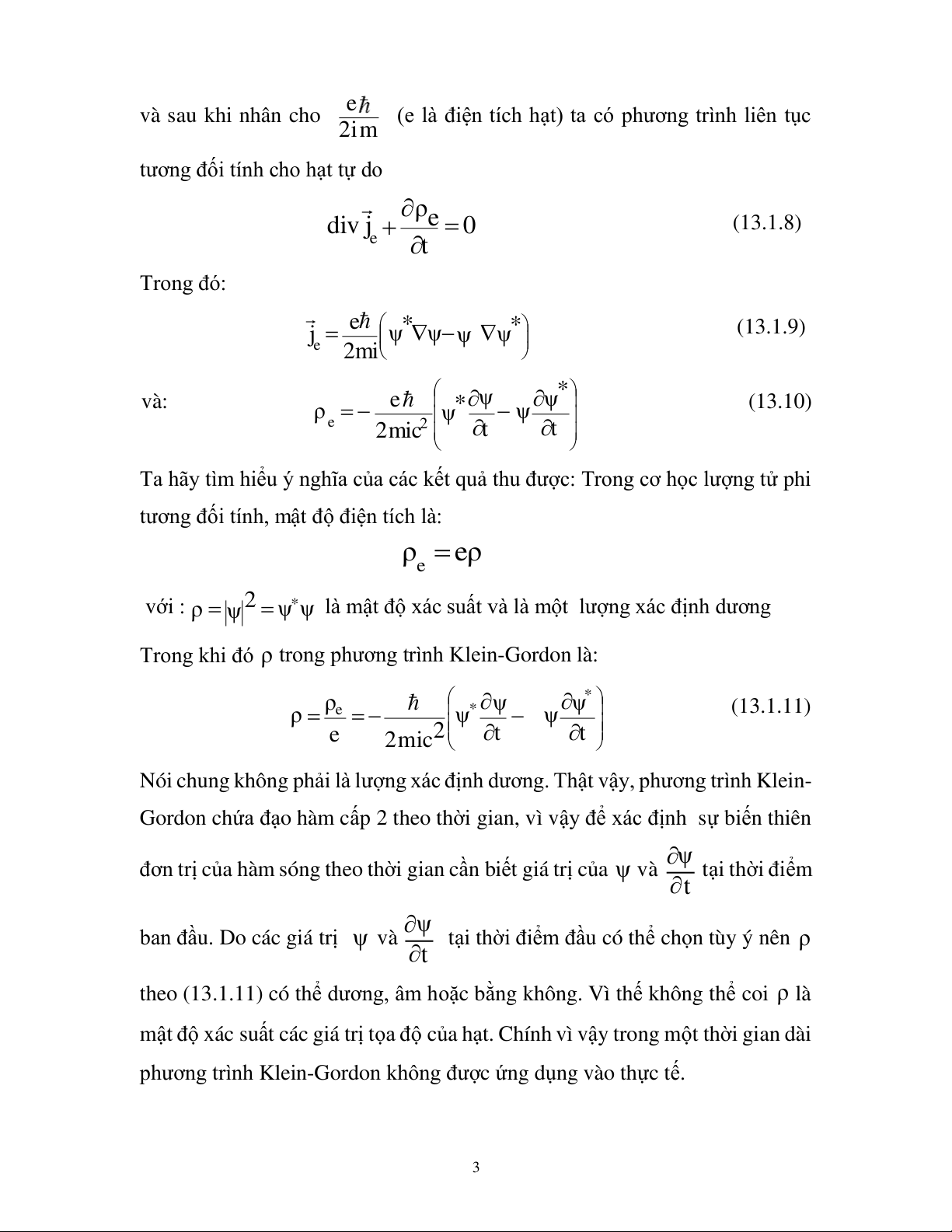 Trong khi đó ρ trong phương trình Klein-Gordon là: * ρe * ψ ψ (13.1.11) ρ ψ ψ e 2 t t 2mic