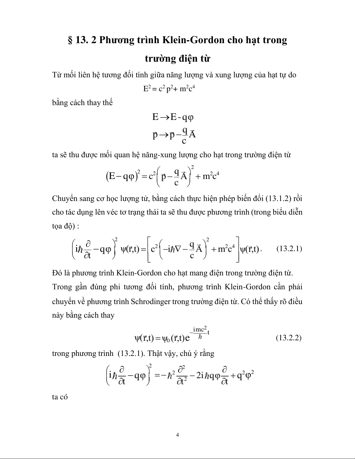 trong phương trình (13.2.1). Thật vậy, chú ý rằng 2 2 2 i φ ta có 4 2 2 2 4 2 ψ 2imc ψ 0 m c ψ imc ψ 2i ψ 2 2 2 q 2 4 q φ ψ 0 c i ψ 0 m c ψ0 c
