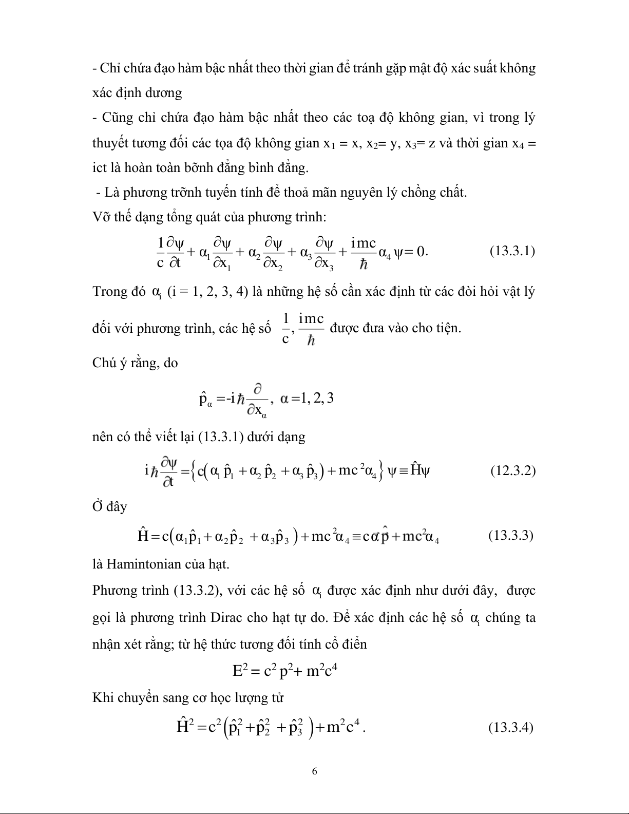 ˆH cα ˆp α ˆp α ˆp 2 (13.3.3) 1 1 2 2 3 3 mc α4 cα α 4 là Hamintonian của hạt.