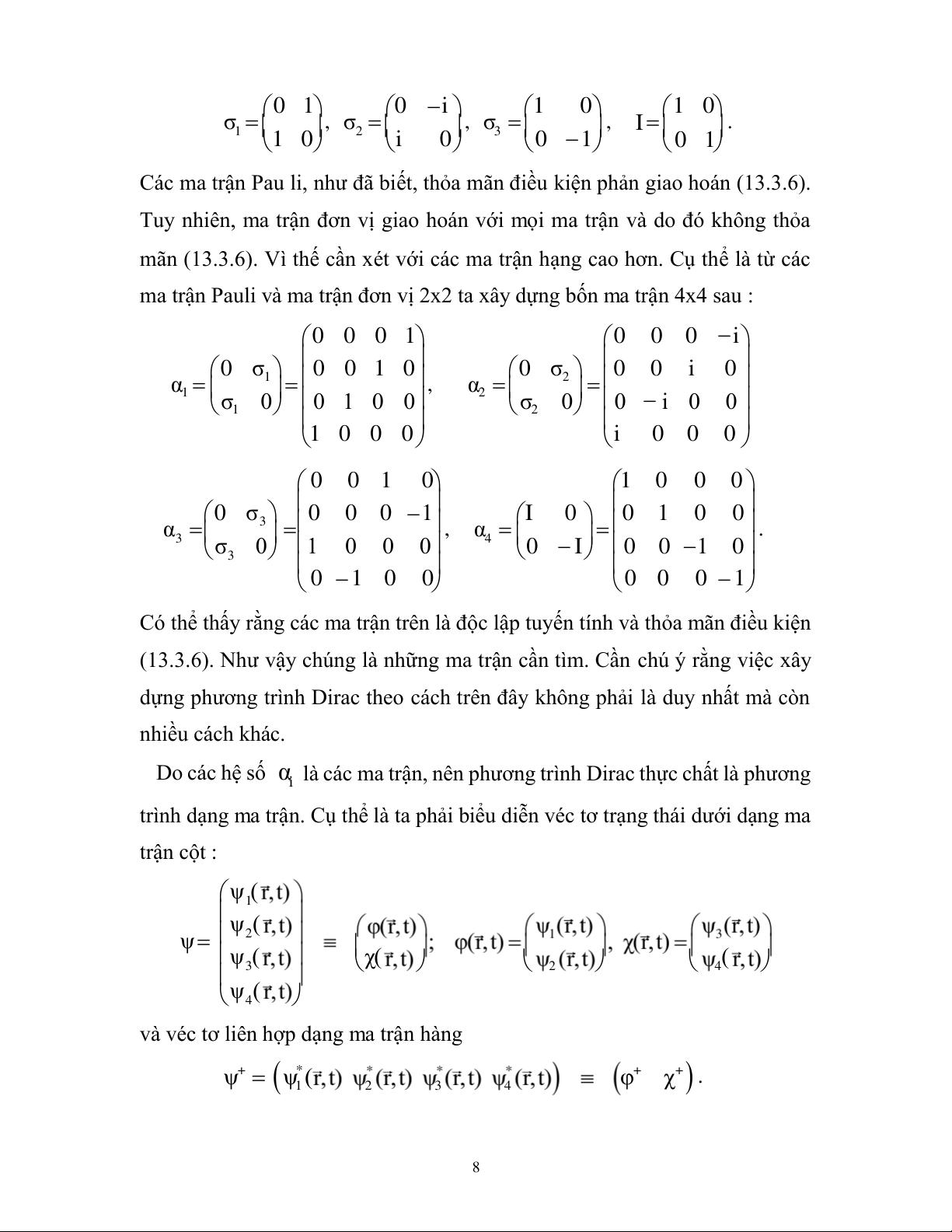 Các ma trận (13.4.4) được gọi là các ma trạn Dirac. Có thể thấy các ma trận