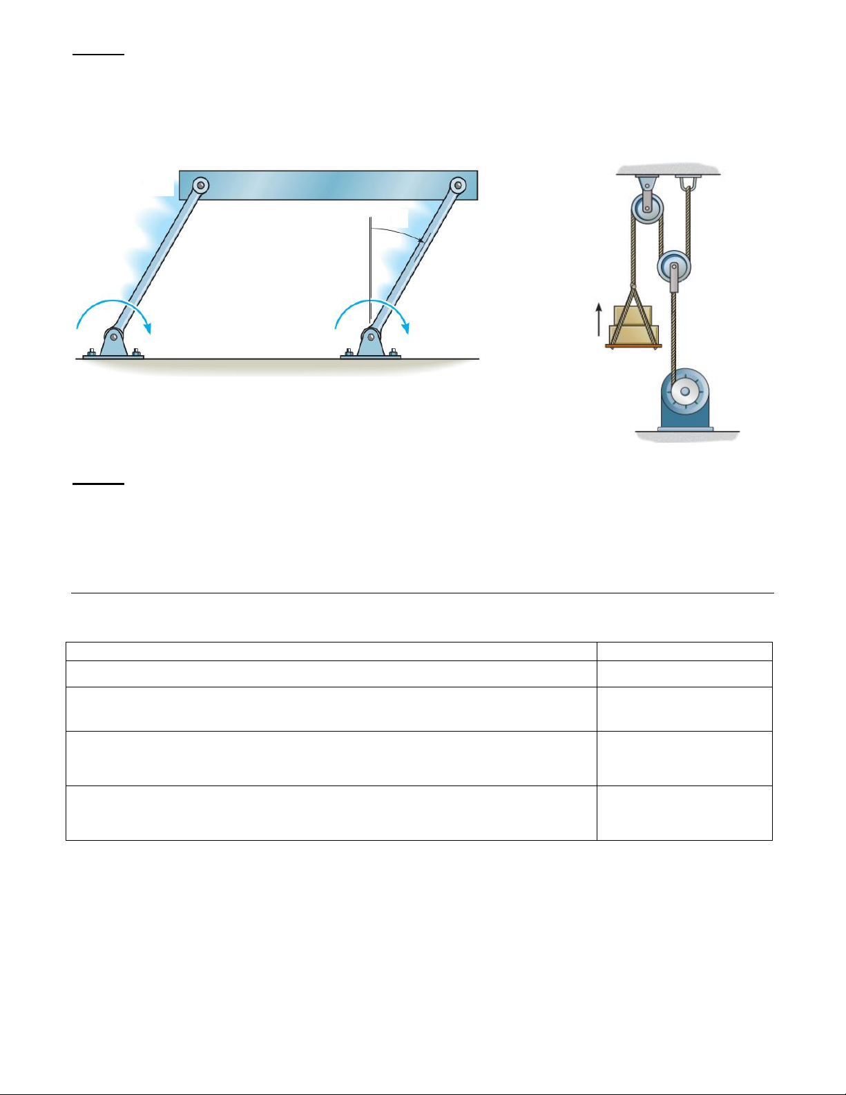 Câu 3: (1.5 điểm) Cho cơ cấu như hình 3. Tác dụng một lực P = 300 N lên sợi dây tại E. Tính