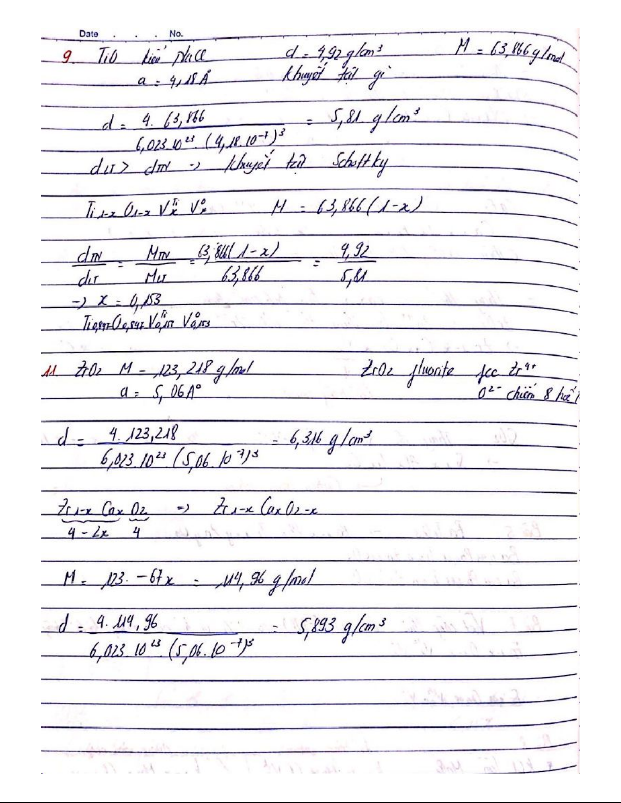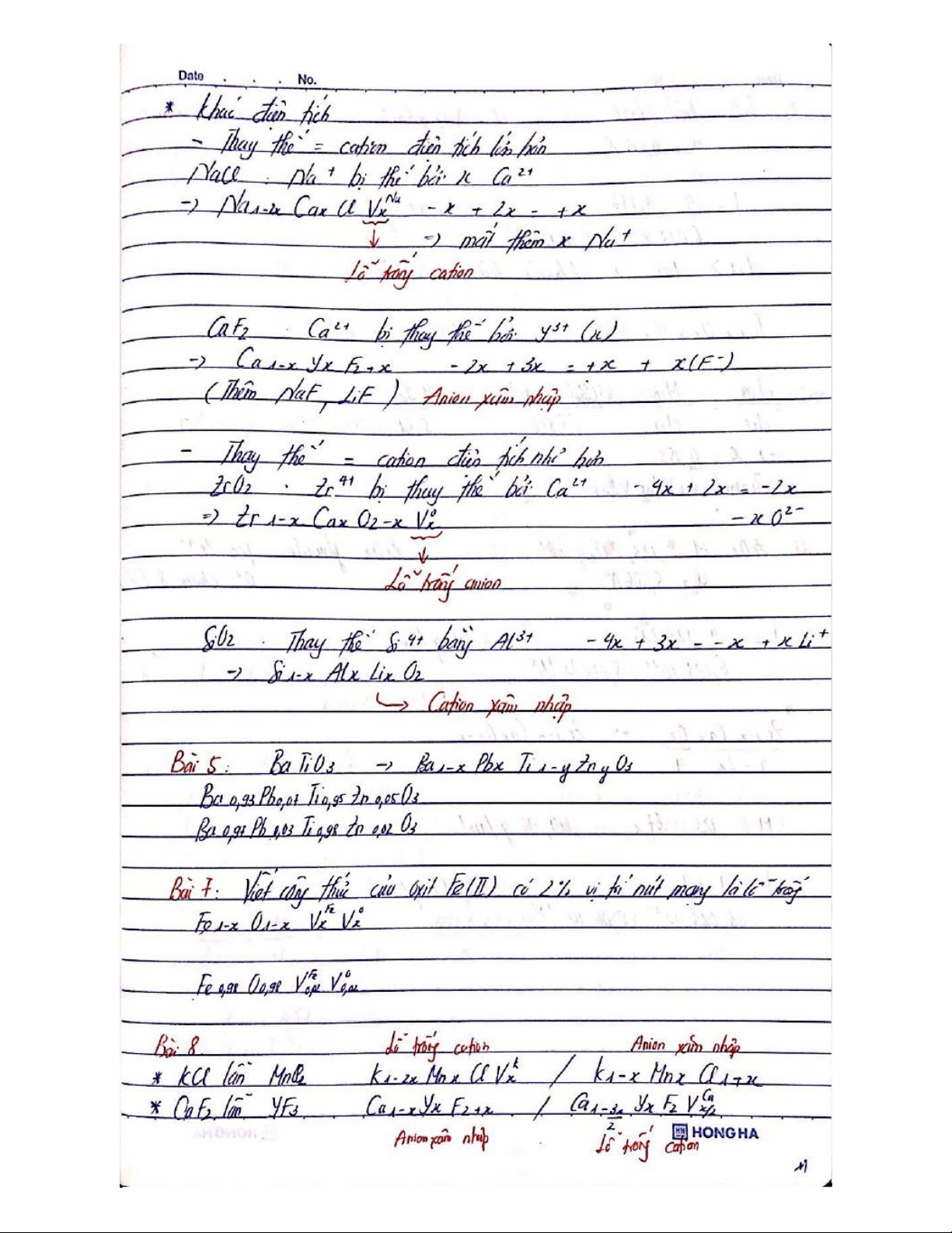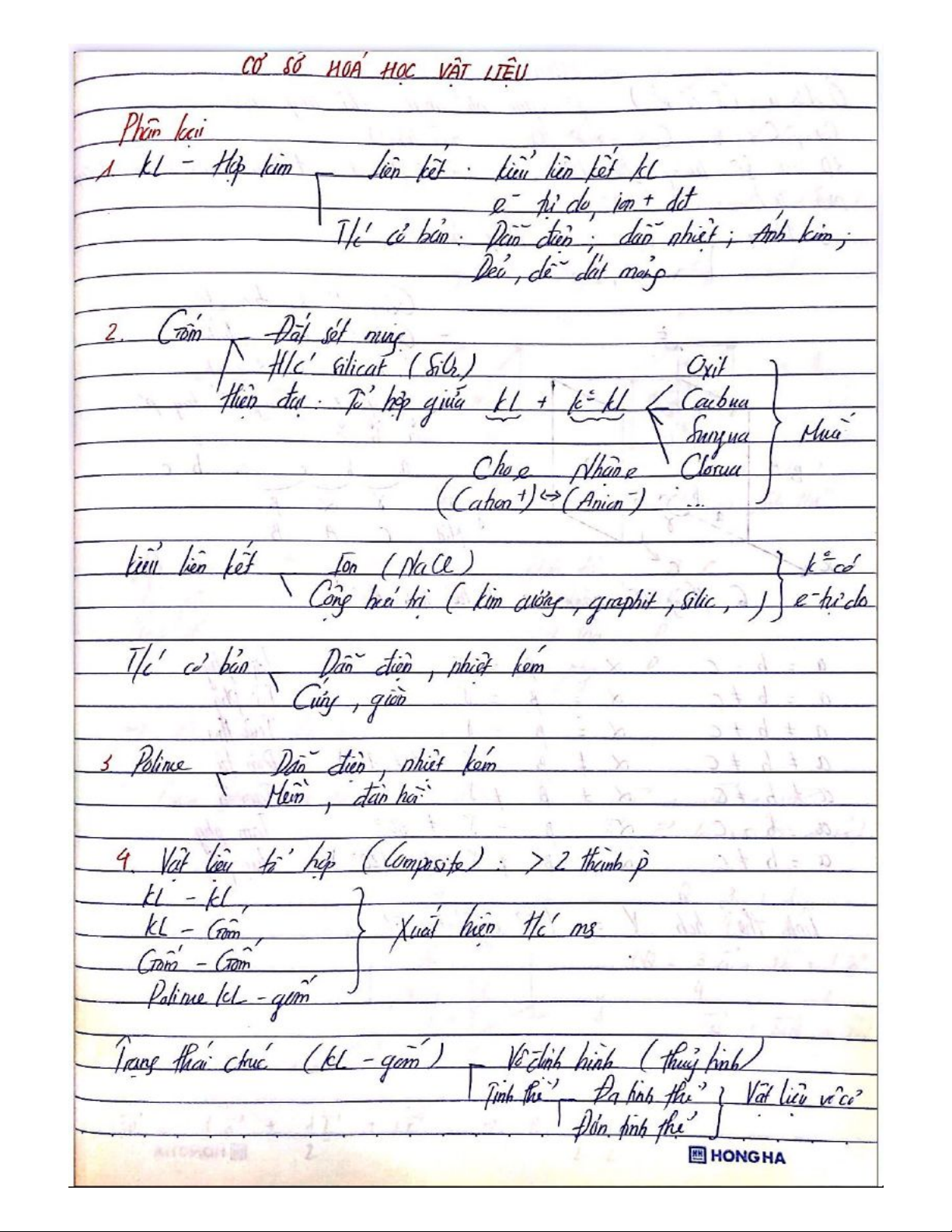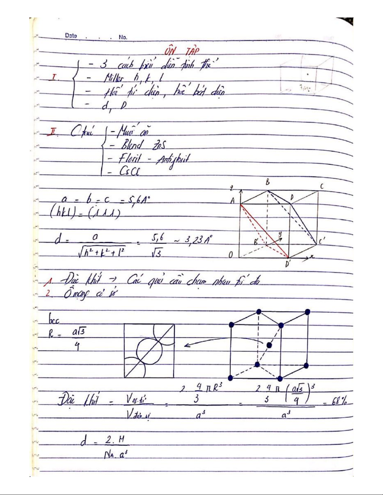 Cơ sở hóa học vật liệu: Ghi chú ôn tập | Cơ sở hóa học vật liệu | Trường Đại học Khoa học Tự nhiên, Đại học Quốc gia Hà Nội