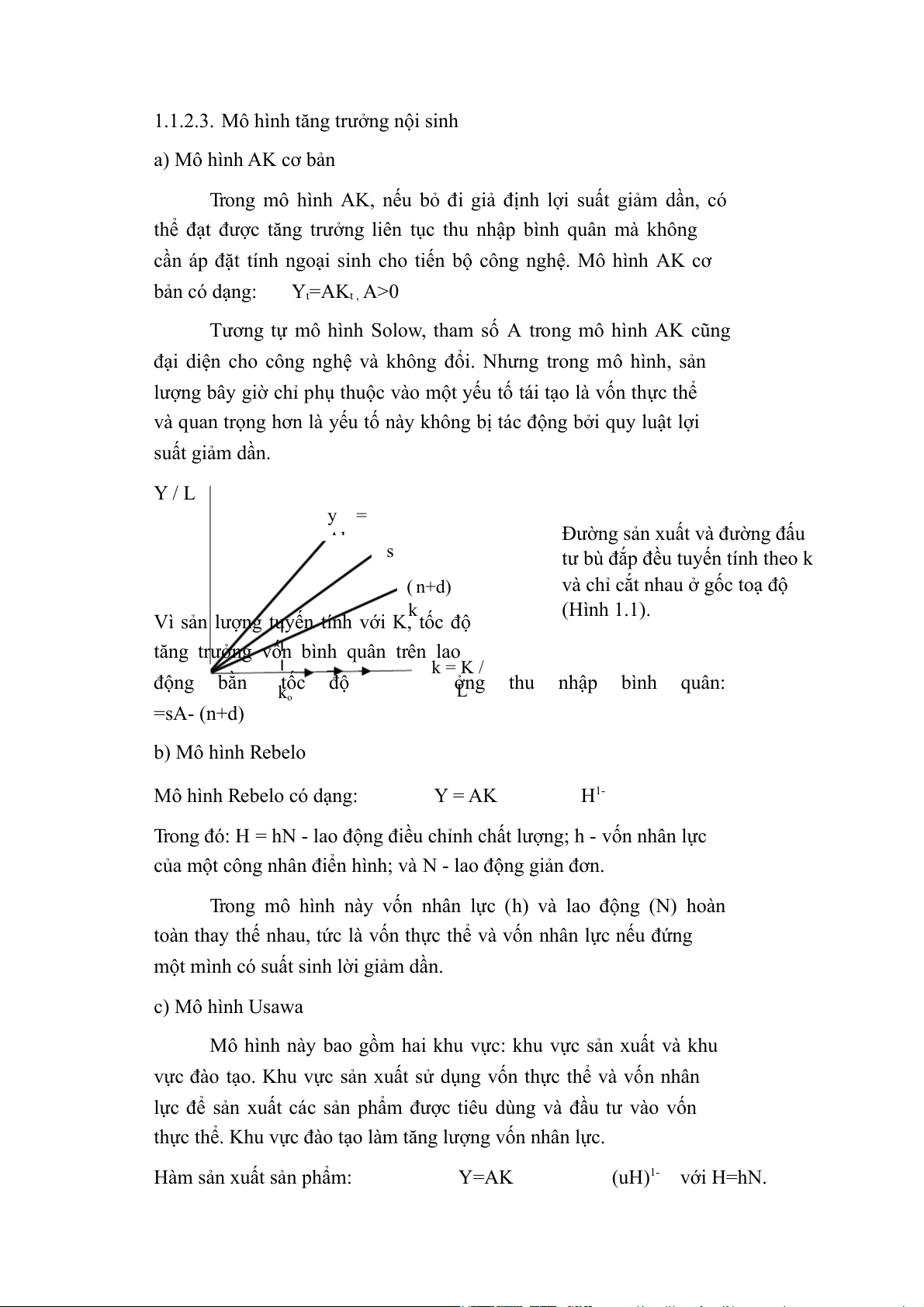 1.1.2.3. Mô hình tăng trưởng nội sinh a) Mô hình AK cơ bản
