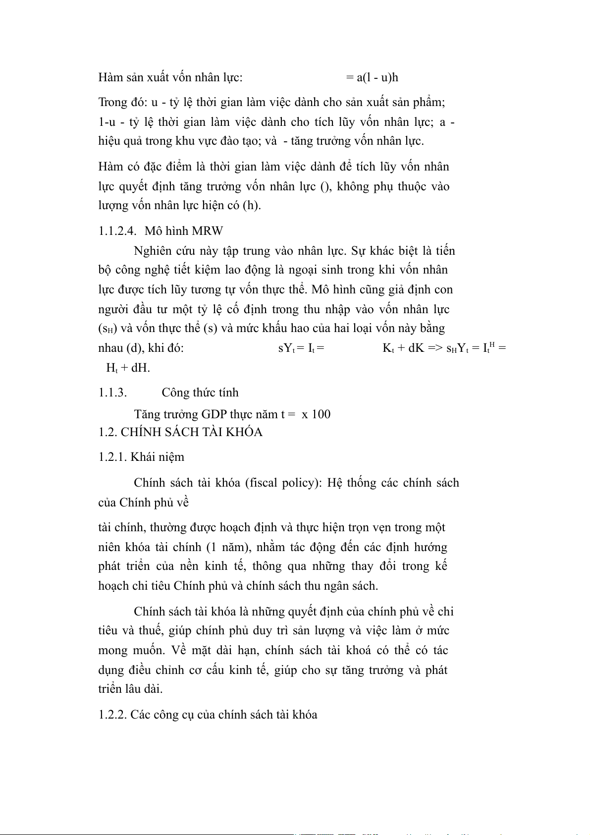 lượng vốn nhân lực hiện có (h). 1.1.2.4. Mô hình MRW