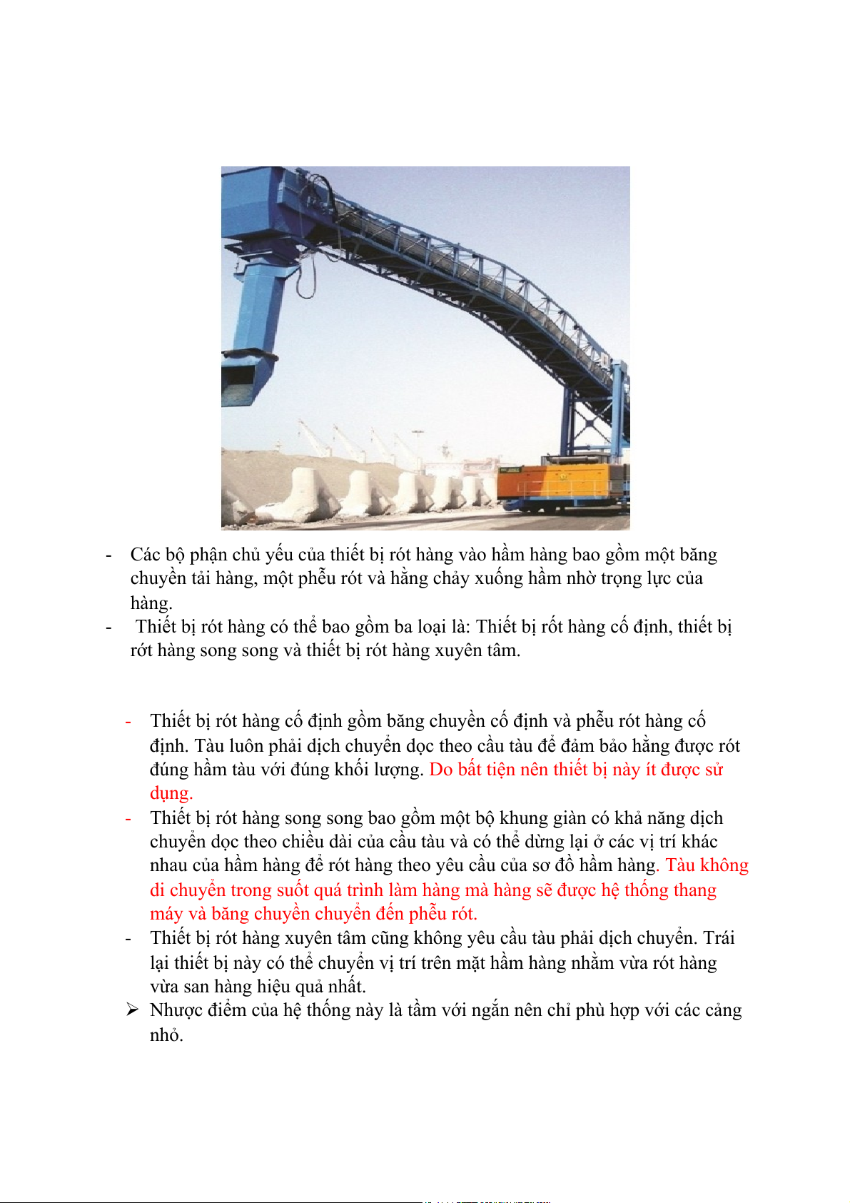 - Các bộ phận chủ yếu của thiết bị rót hàng vào hầm hàng bao gồm một băng