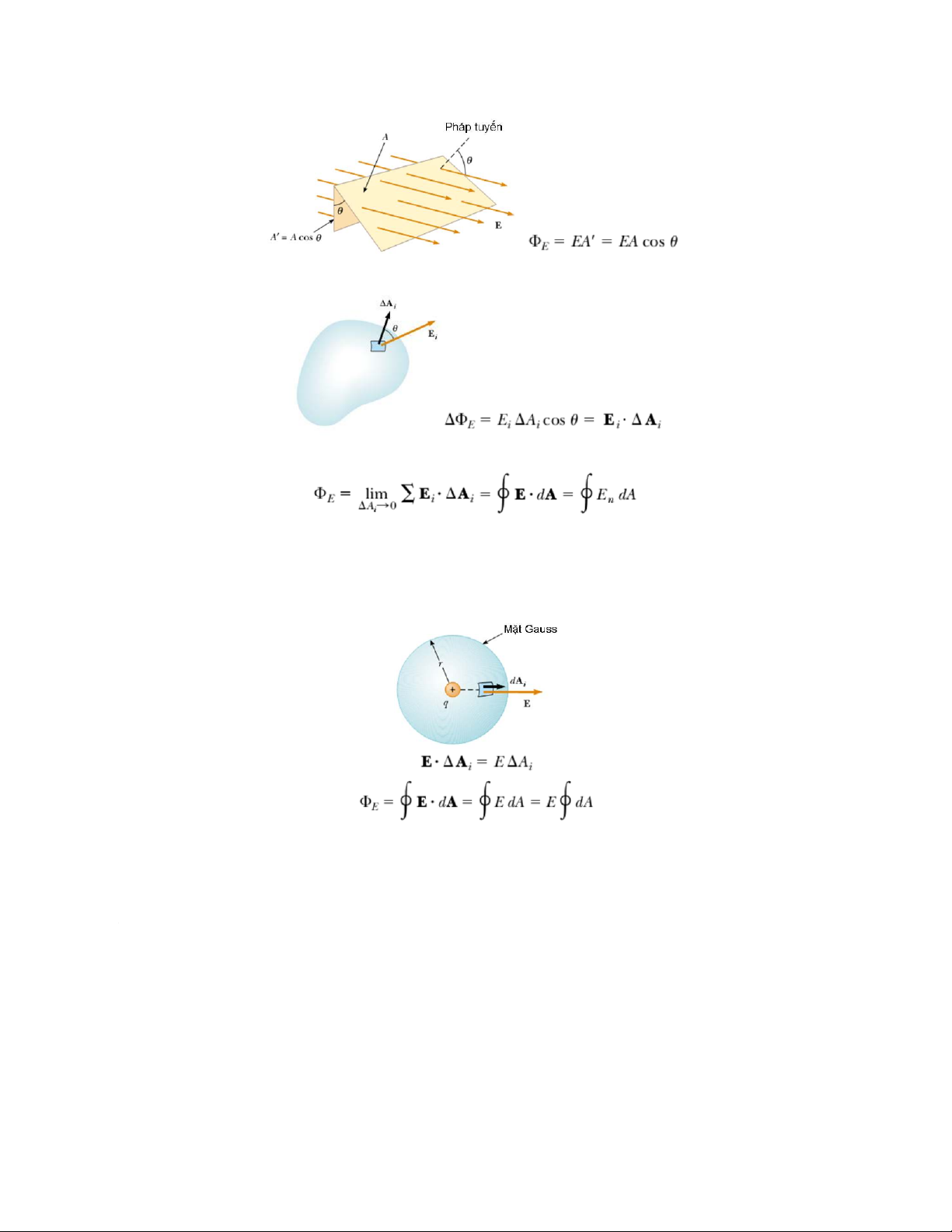 hoặc E song song với dA và E = const → dФE = + EdA hoặc dФE = – EdA;