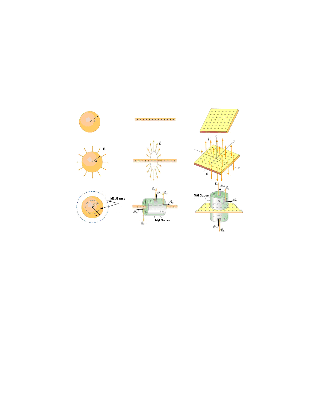 phân bố điện tích có tính đối xứng cầu, trụ hoặc đối xứng qua mặt phẳng. Áp dụng định lý Gauss