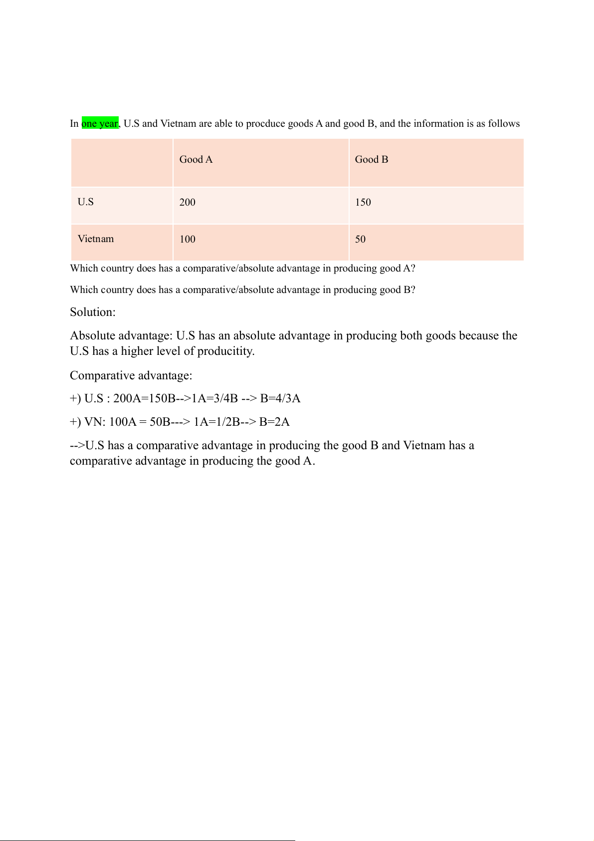 ➔ , Nam has an absolute advantage and a comparative advantage in typing Solution: