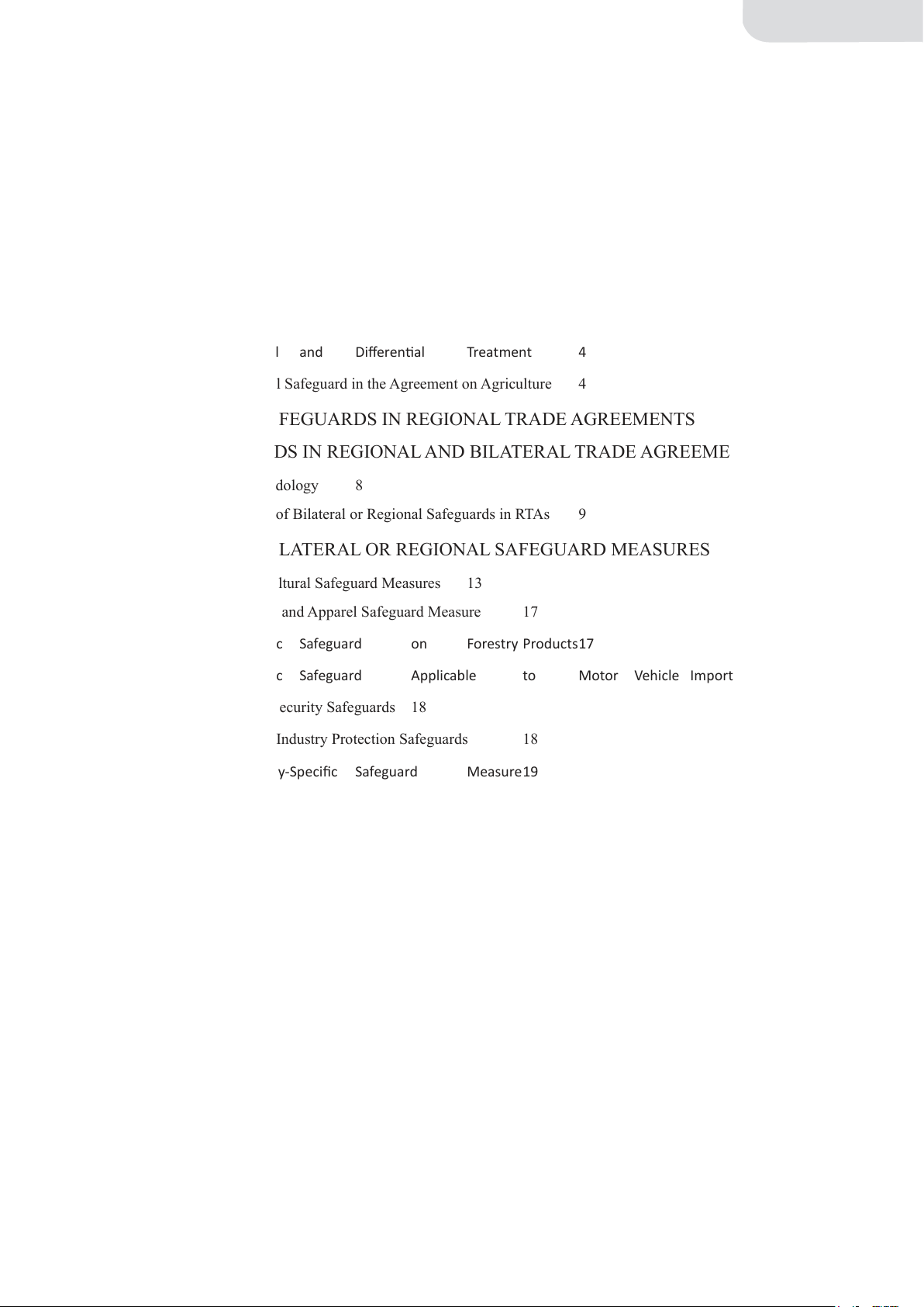 5.2 Textile and Apparel Safeguard Measure 17 5.3 Specific Safeguard on Forestry Products 17 5.4 Specific Safeguard Applicable to Motor Vehicle Imports 18