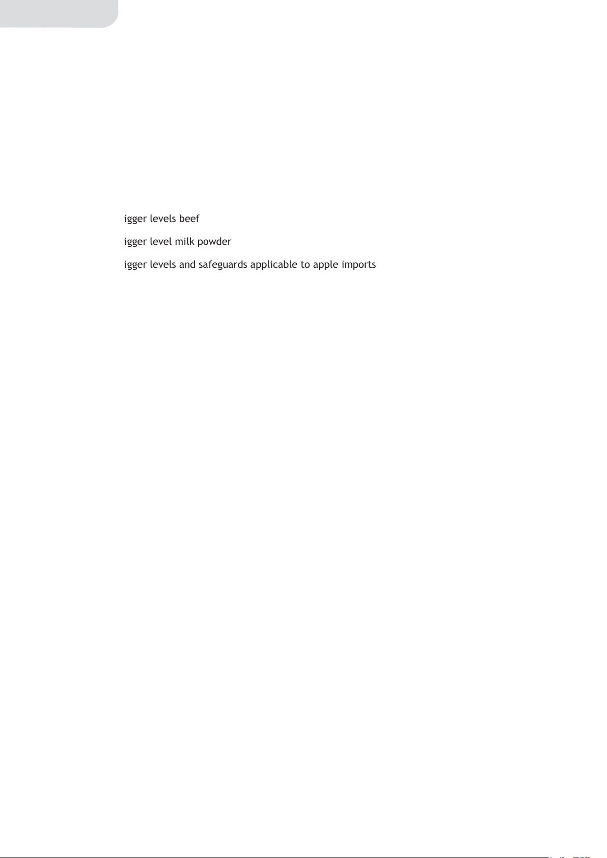 Appendix D: WTO safeguard agreement and general bilateral safeguard provisions Appendix E: WTO agreement on agriculture and agriculture Trigger levels beef specific bilateral safeguards Trigger level milk powder LIST