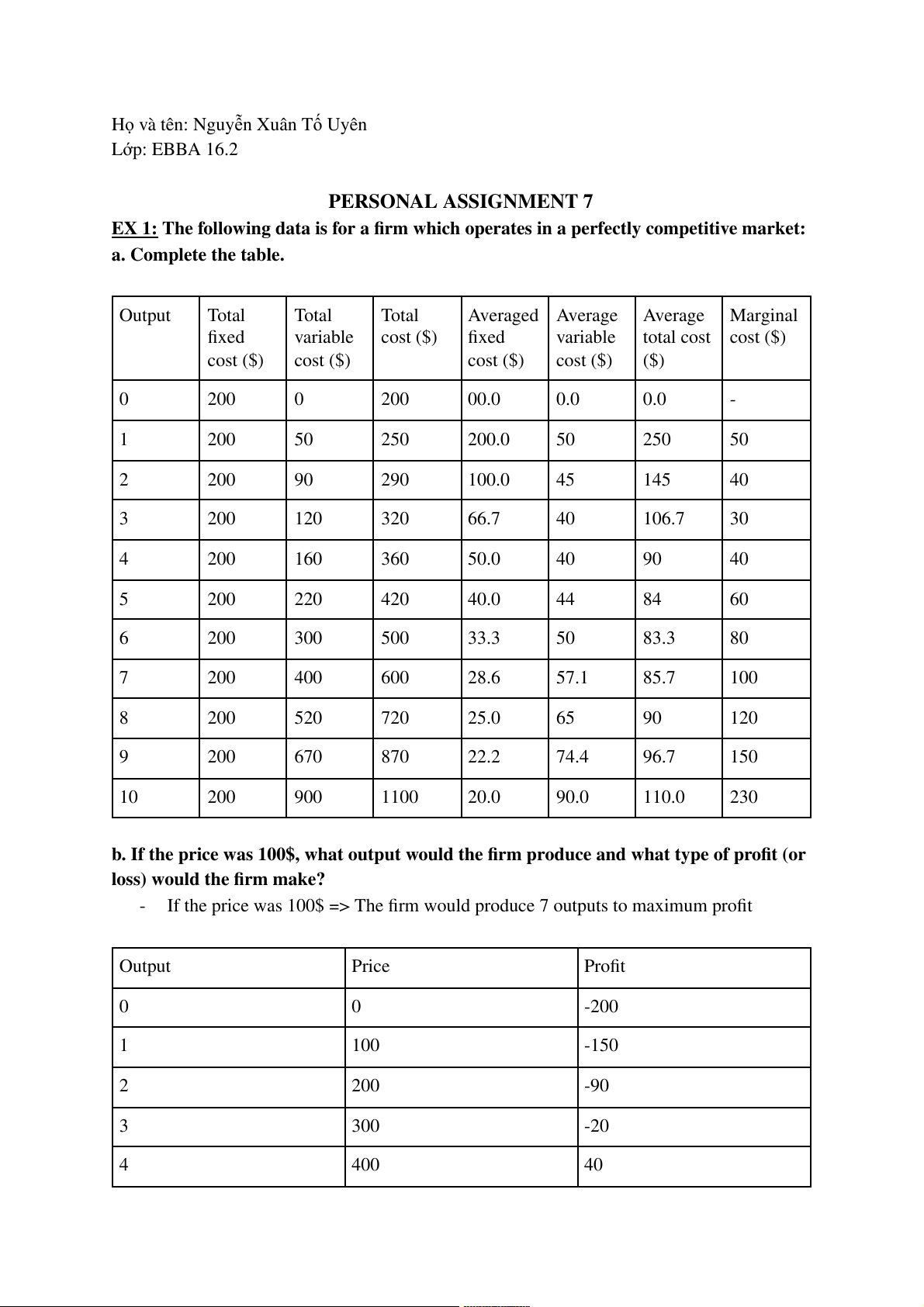 Họ và tên: Nguyễn Xuân Tố Uyên Lớp: EBBA 16.2 PERSONAL ASSIGNMENT 7