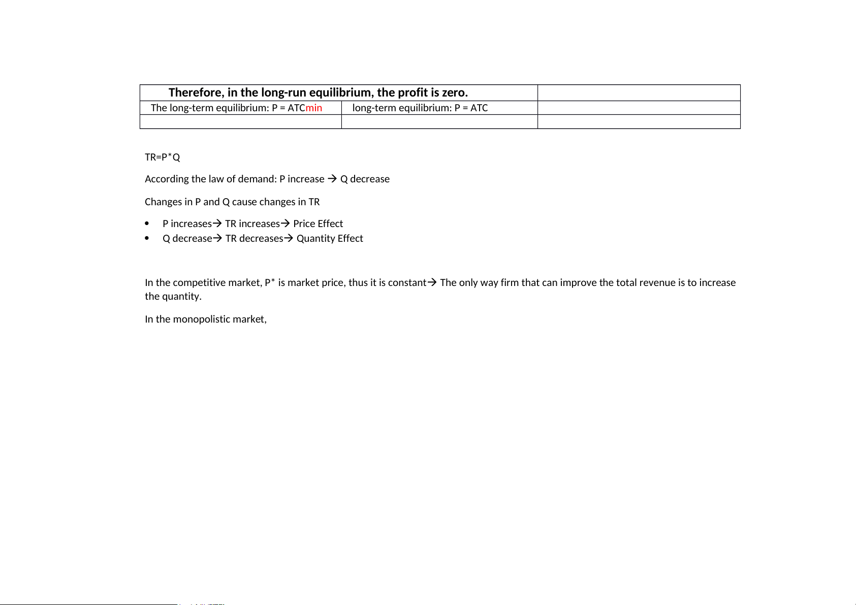 The long-term equilibrium: P = ATCmin long-term equilibrium: P = ATC TR=P*Q
