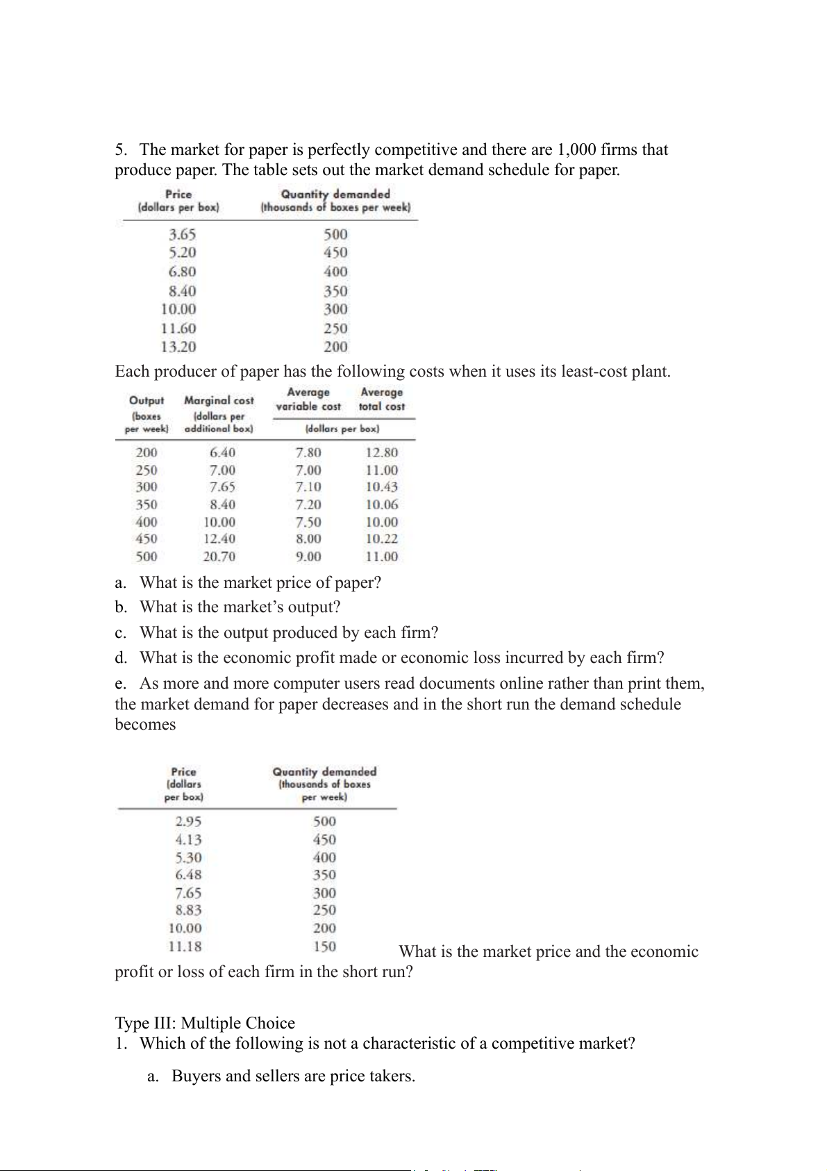 5. The market for paper is perfectly competitive and there are 1,000 firms that