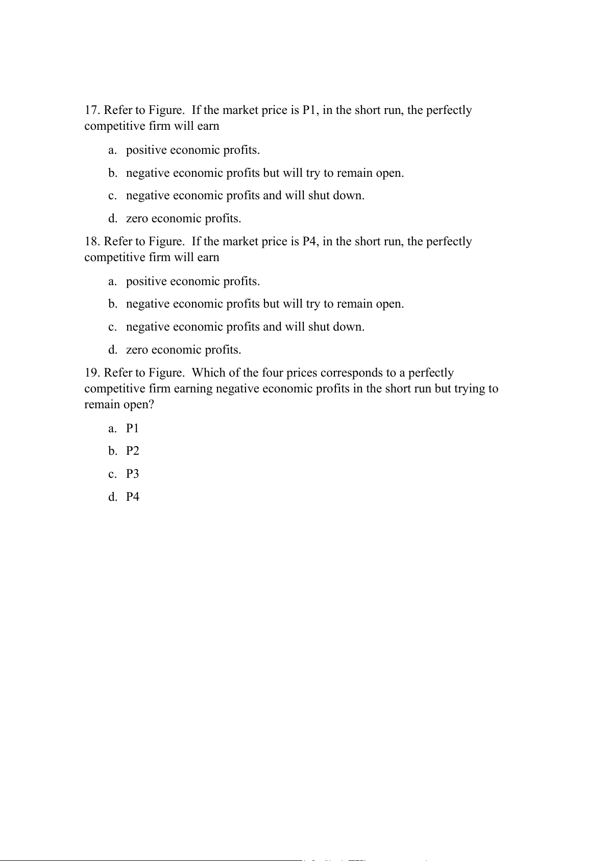 18. Refer to Figure. If the market price is P4, in the short run, the perfectly competitive firm will earn a. positive economic profits.