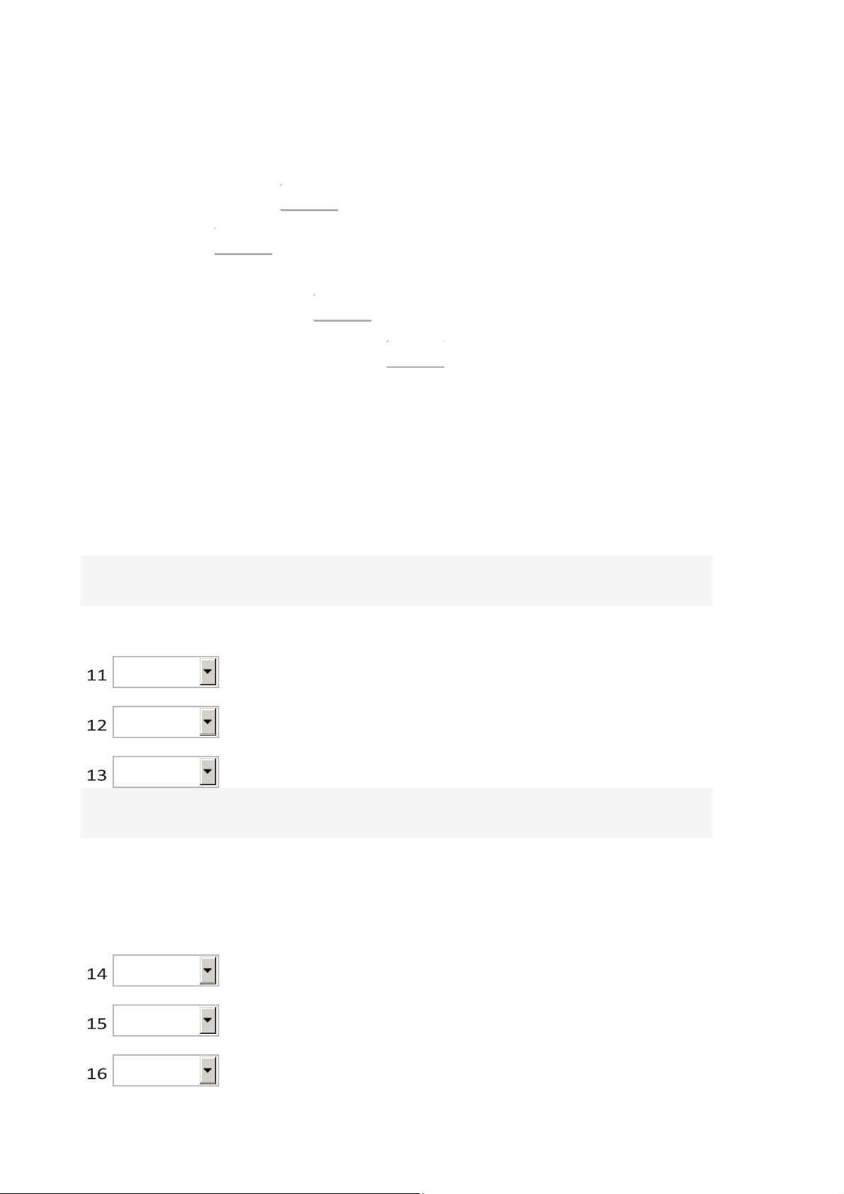 Write the correct letter, A, B or C, next to questions 11-16.    A