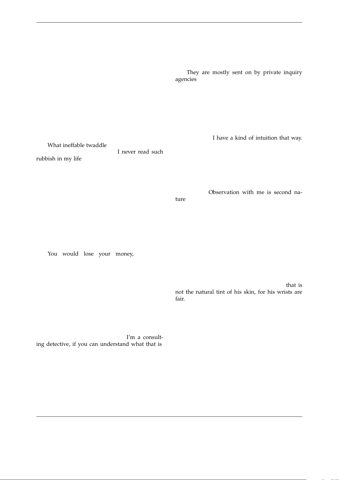 This text was formatted from various free ASCII and HTML variants. See http://spellbreaker.org/˜chrender/Sherlock Holmes for