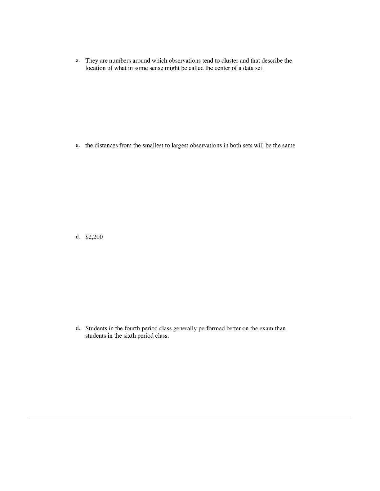 ____ 5. An exam is given to both the fourth period class and the sixth period class. If a student's score is at